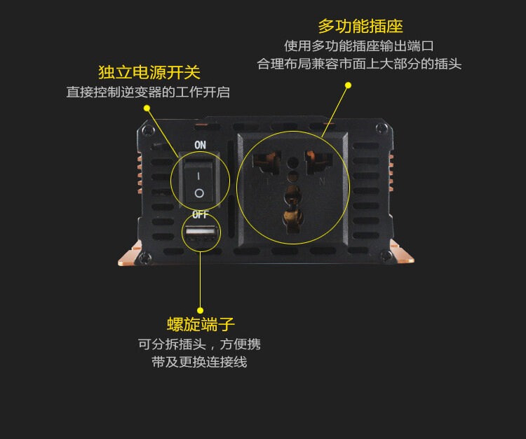 Инвертор преобразователь напряжения 12-220 автомобильный, черный