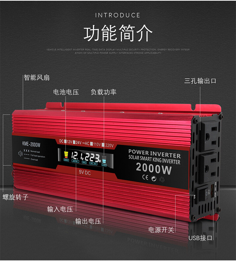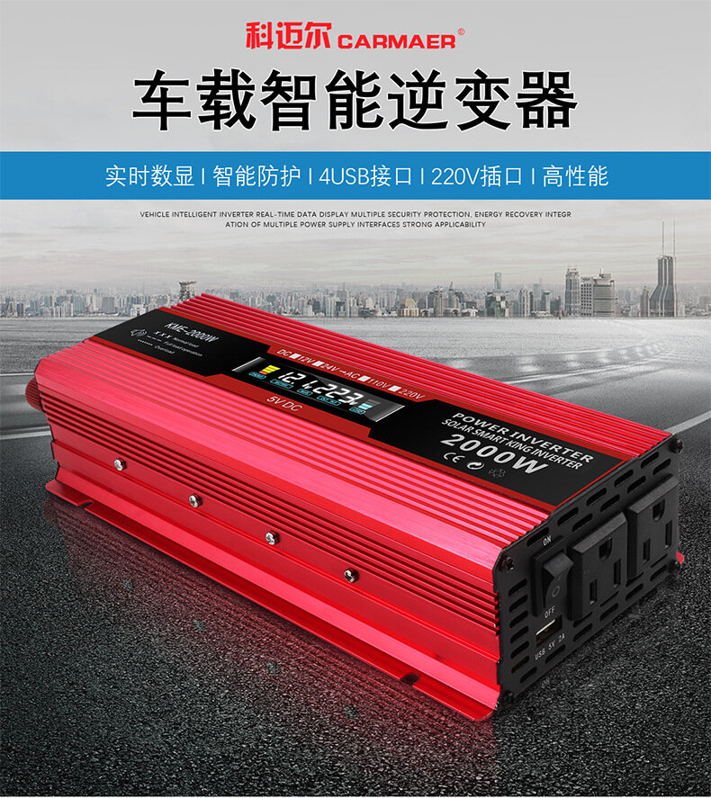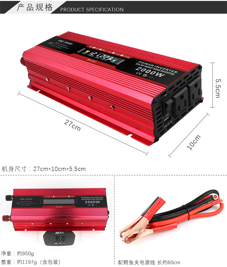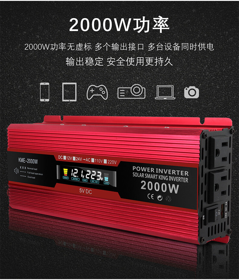 Инвертор, ЖК-дисплей, 1200 Вт, 12-220В, красный интересное: