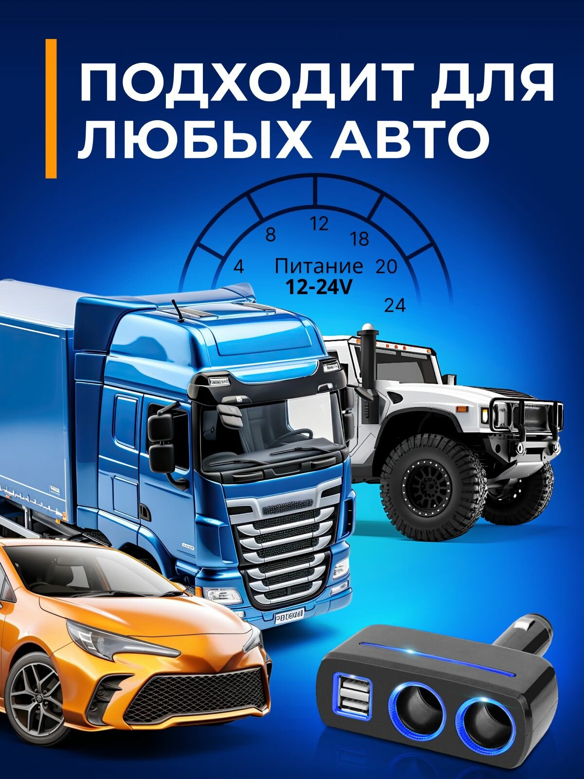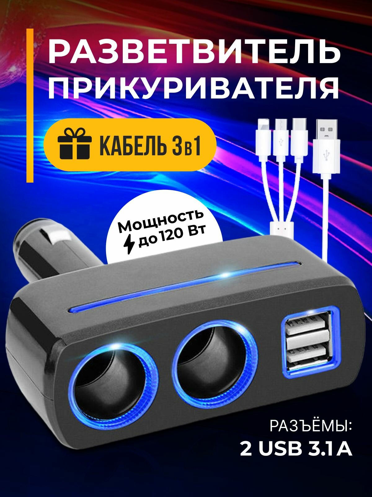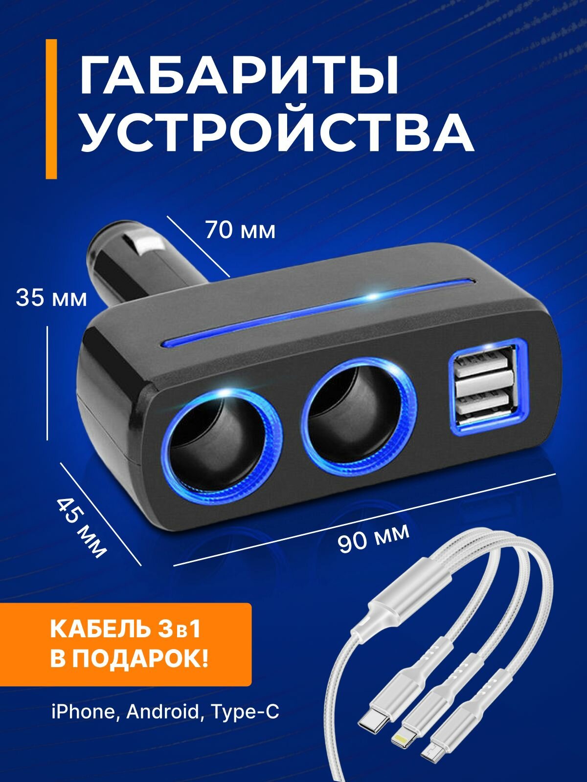 Разветвитель usb автомобильный в прикуриватель авто, зарядное устройство в машину, быстрая зарядка