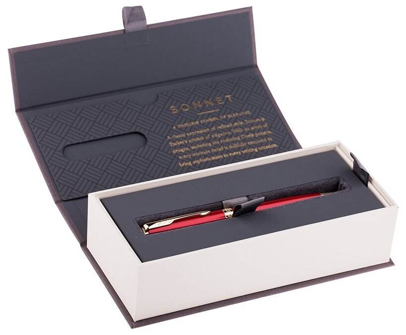 Ручка шариковая PARKER "Sonnet Core Intense Red Lacquer GT", корпус красный глянцевый лак, позолоченные детали, черная, 1931476