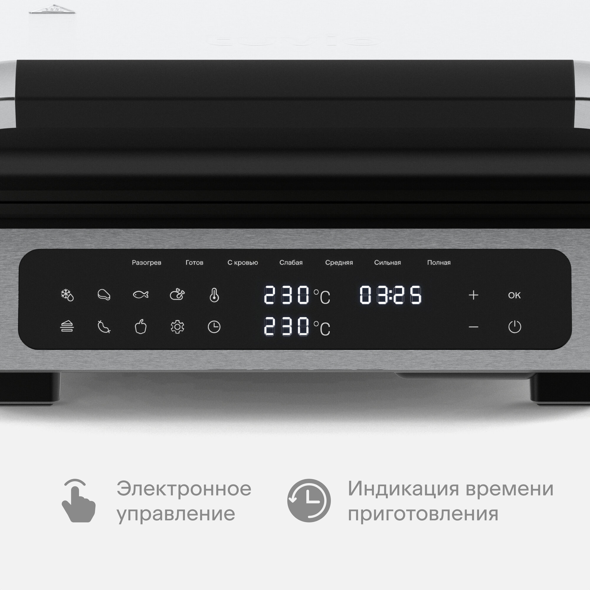 Гриль электрический с датчиком определения толщины стейка Tuvio TG02DM, чёрный интересное: