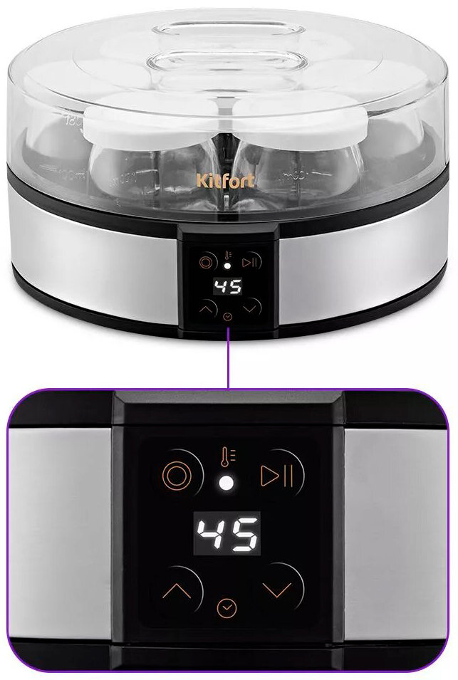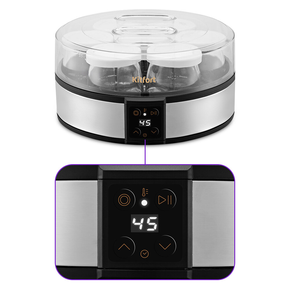 Йогуртница Kitfort KT-2088, электронное управление, дисплей, мощность 20Вт, 7 баночек, бело-фиолетовая