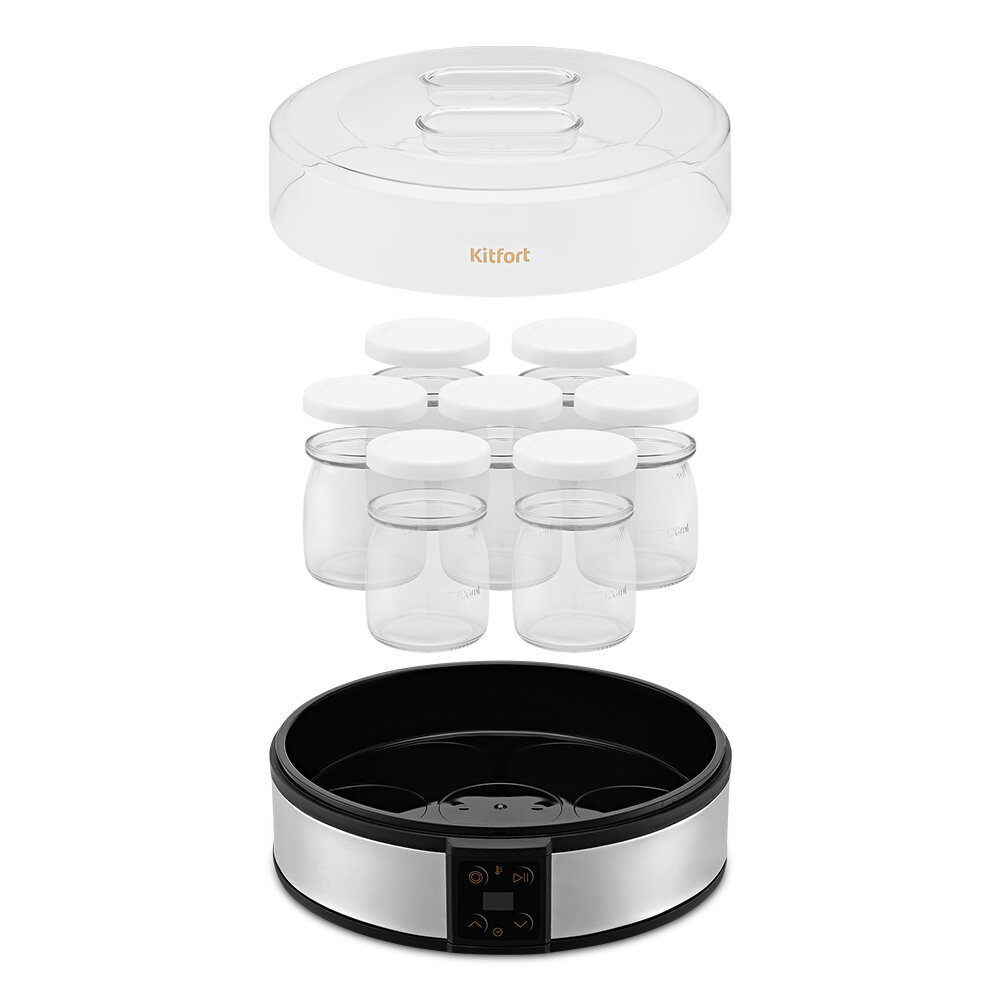 Йогуртница Kitfort КТ-6396, с дисплеем, регулятором нагрева и времени, 12 баночек, 260Вт, белая