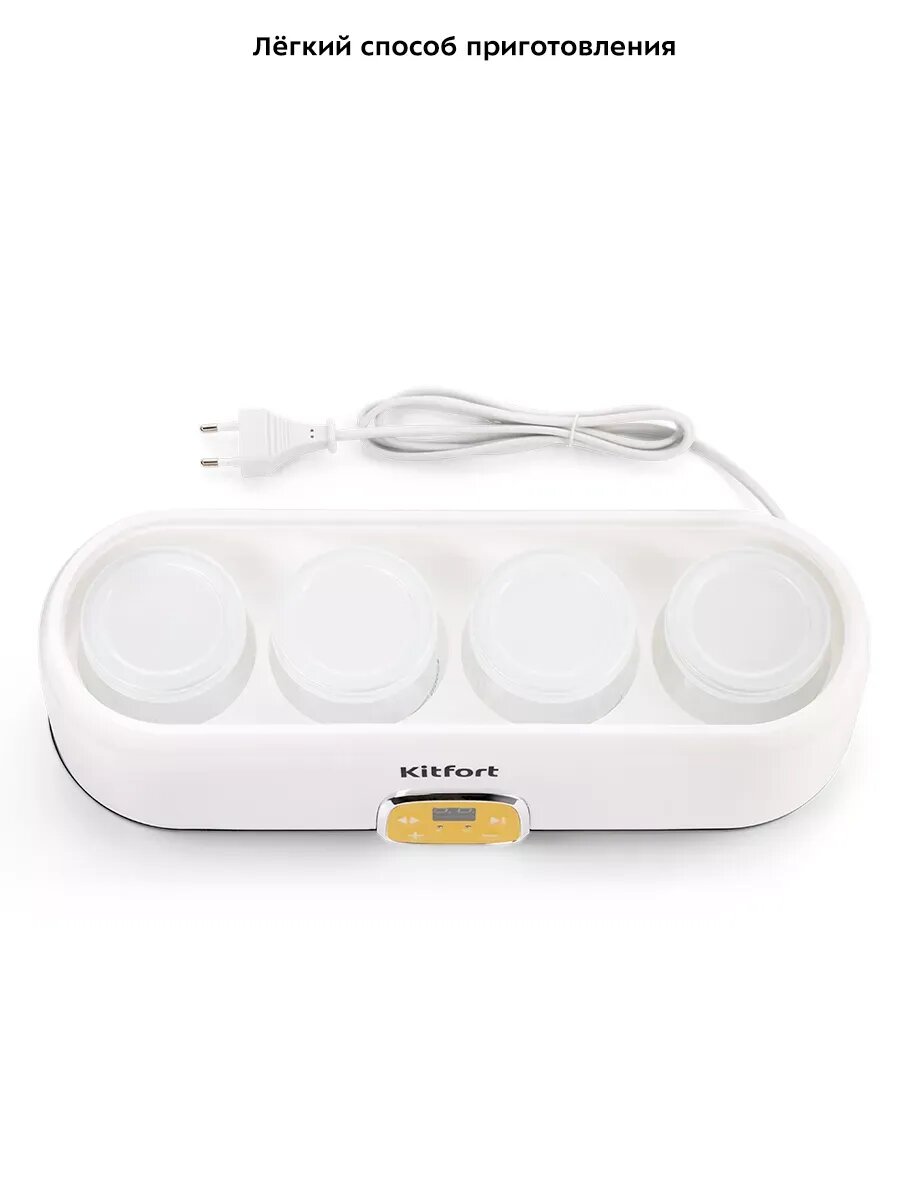 Йогуртница Kitfort КТ-6038, 20 Вт, 200 мл, 4 ёмкости, стекло, белая