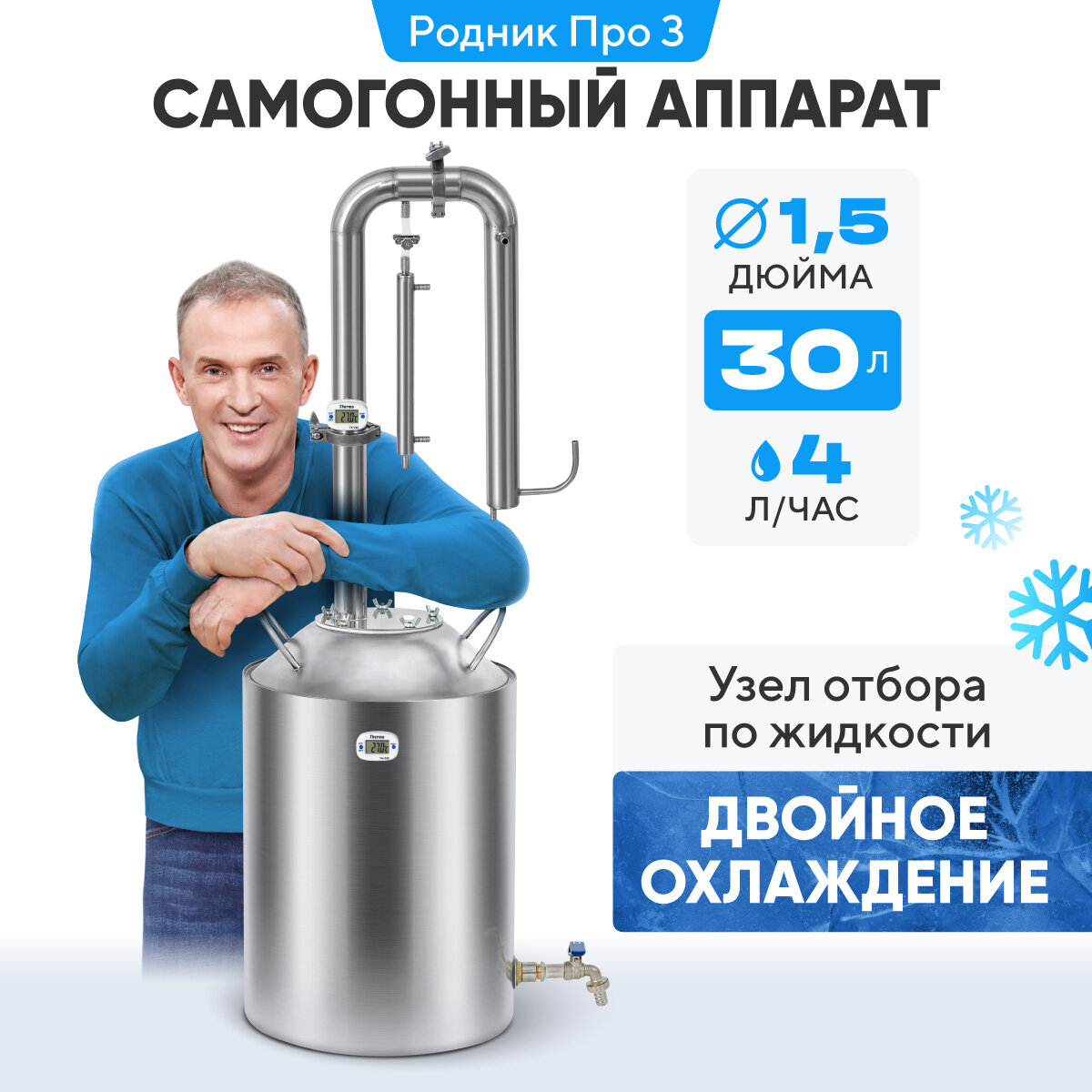 Самогонный аппарат 30 литров Родник Про3 колонного типа интересное: