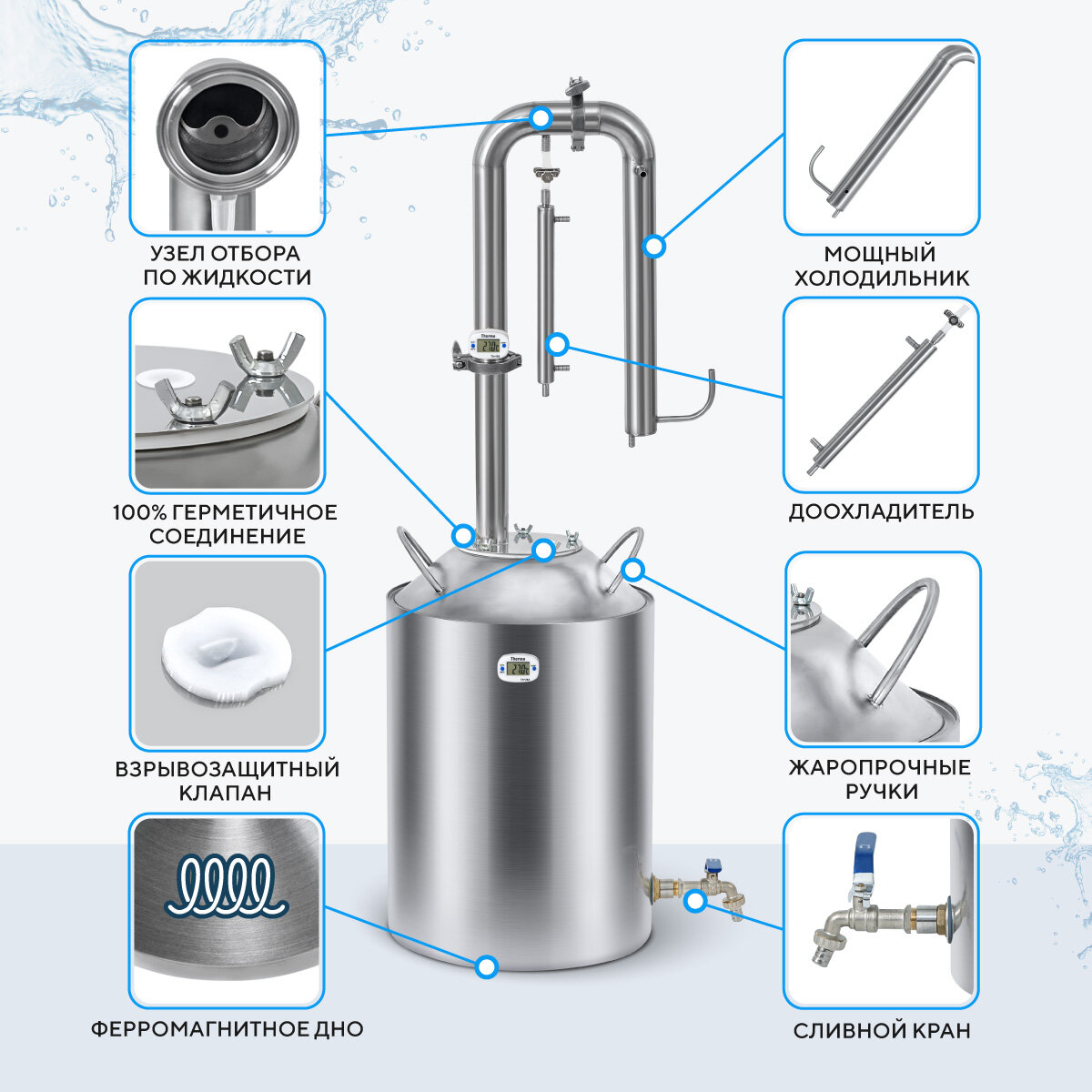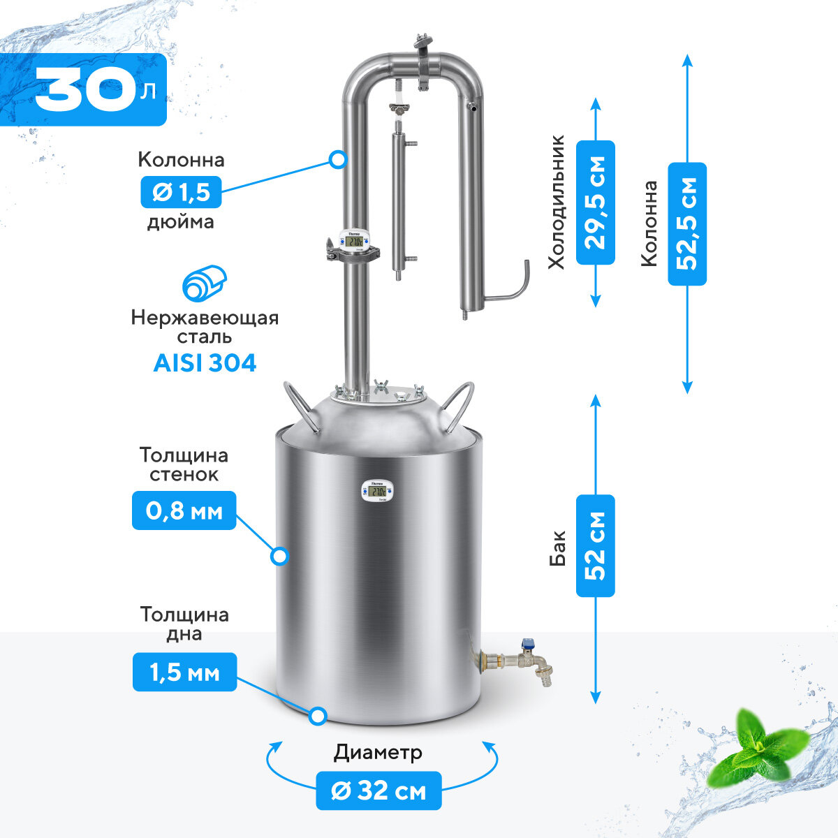 | Дополнительная информация | Самогонный аппарат Родник Про 30л, бражная колонна с узлом отбора по жидкости 1.5 дюйма / Дистиллятор колонного типа для самогоноварения домашний |
