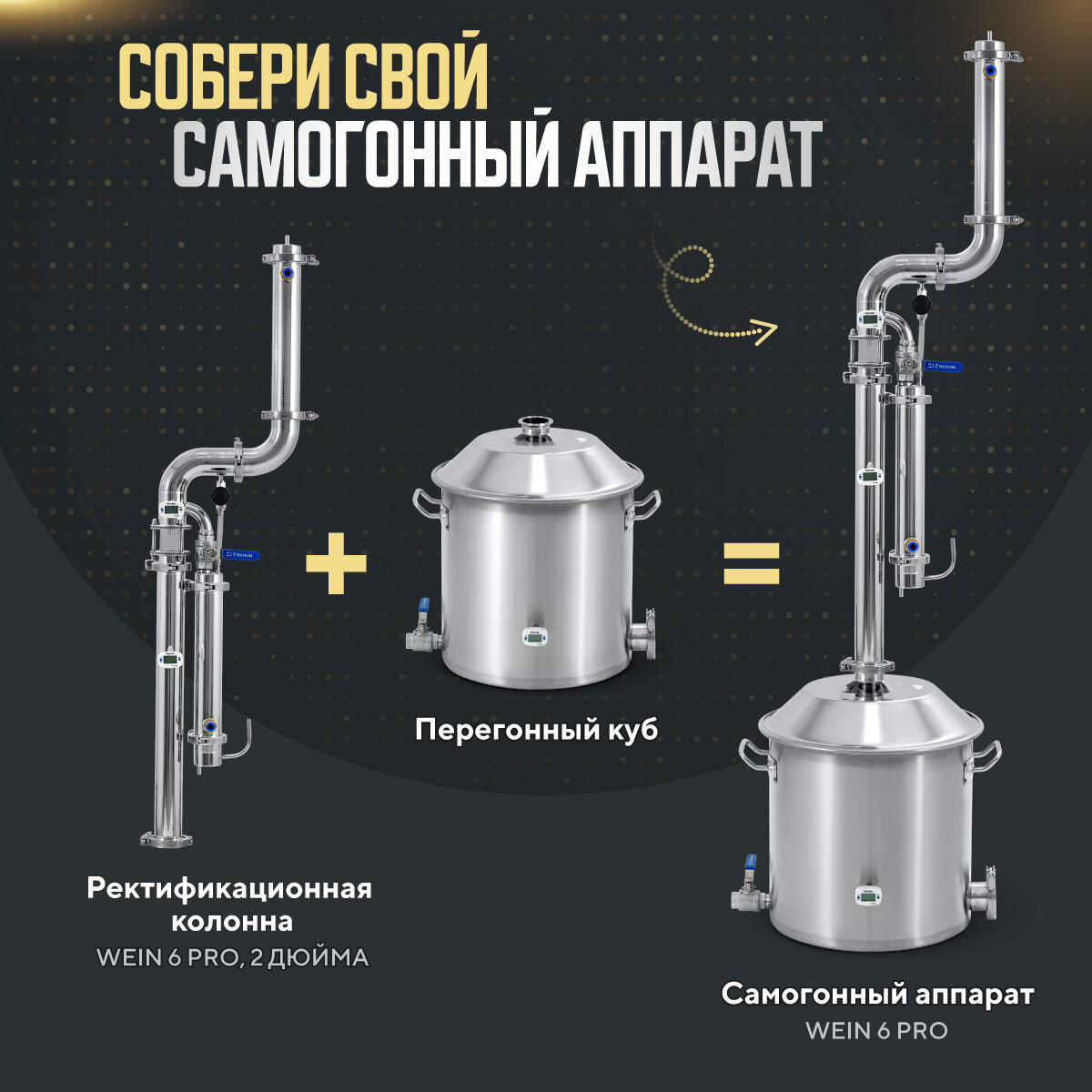 | Дополнительная информация | Перегонный куб для самогонного аппарата Wein 6 PRO 2 дюйма, дистиллятор Вейн 37 л для самогоноварения |