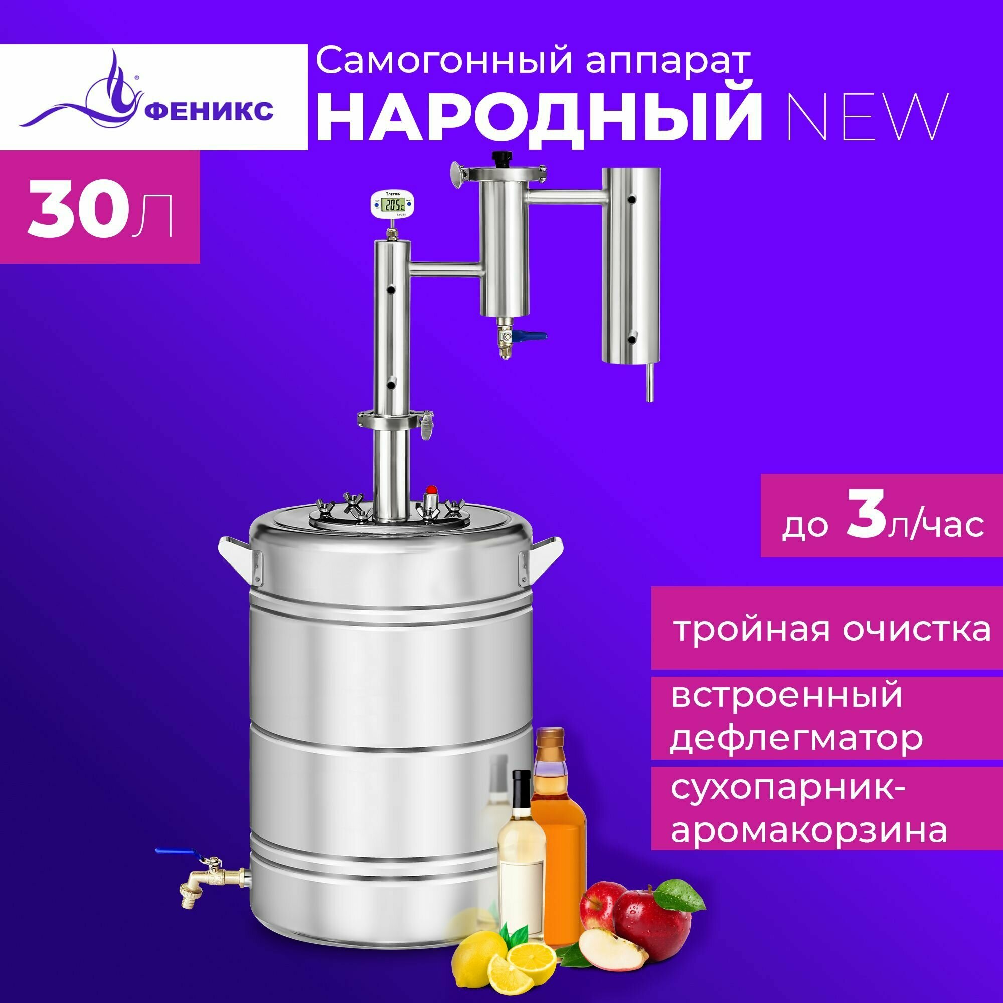 Самогонный аппарат Феникс Народный New 30 литров дистиллятор с дефлегматором и джин корзиной интересное: