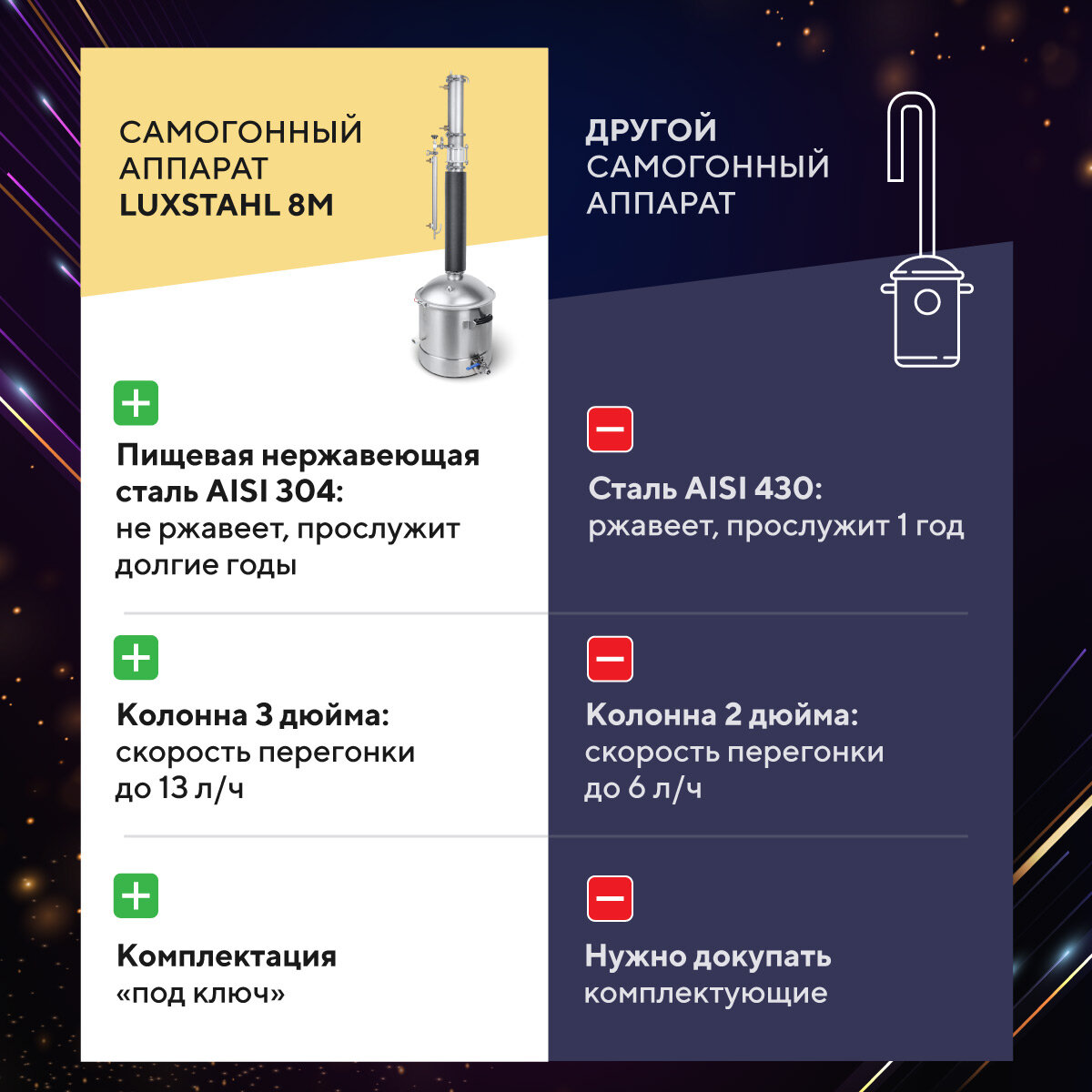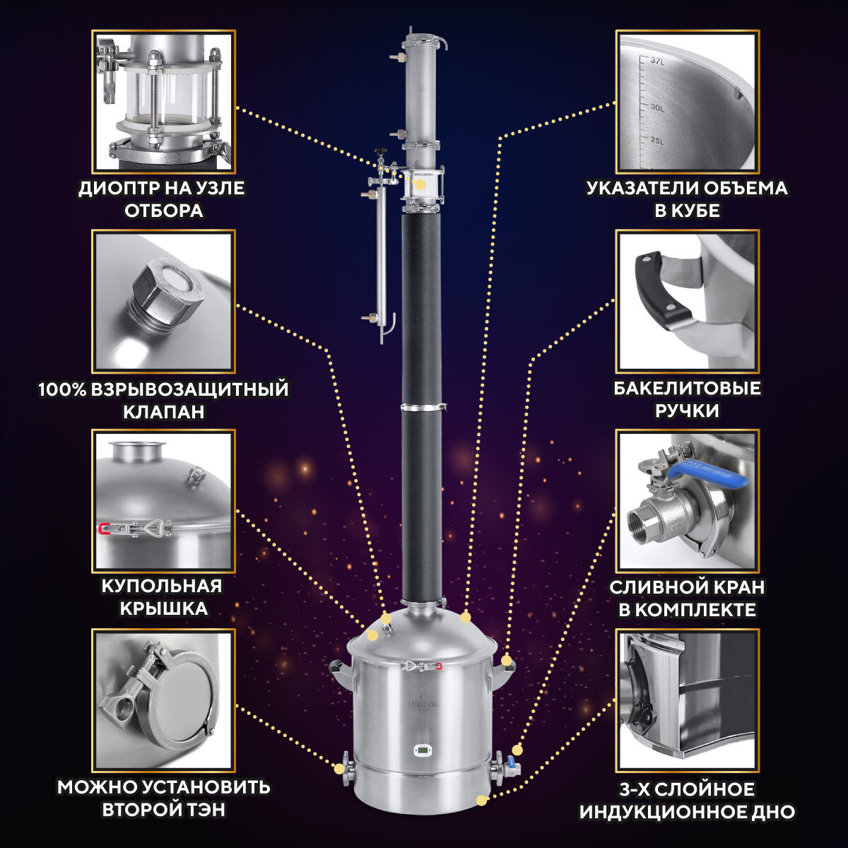 Самогонный аппарат колонного типа 3 дюйма LUXSTAHL 8M домашний 37л Люкссталь интересное: