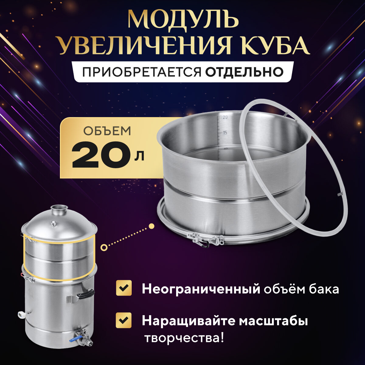 | Подробная комплектация | Комплектация колонны: Носик с ТСА (трубка связи с атмосферой); Кламп 3″ + прокладка, 5 шт.; Дефлегматор; Переходник на кран; Трубка силикон, 7 метров; Узел отбора с диоптром + кламп 1/2 ″; Доохладитель с игольчатым краном + кламп 1/2″; СПН 3,5×3,5 (4,8 кг в 2 царгах); Термометр цифровой; Нерж. царга 3″ - 50 см (2шт) с утеплителем; Разворот 180° (для простой перегонки); Спиртометр; Книга 100 рецептов + руководство; Сетка нерж. РПН (1 м). Комплектация куба: Купольная крышка; Обруч; Силиконовая прокладка с армирующим кольцом; Емкость (куб); Цифровой термометр; Сливной кран + заглушка под ТЭН + кламп 2″ (2 шт). |