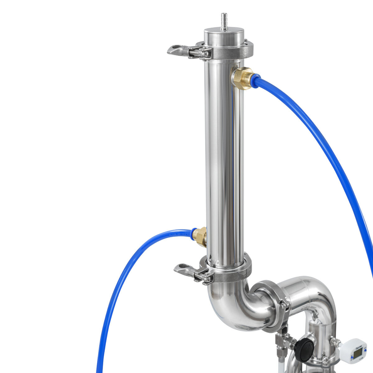 | Подробная комплектация | Колонна с узлом отбора Кламповый хомут, 2 дюйма — 8 шт. Уплотнение клампа, 2 дюйма — 8 шт. Быстросъем — 4 шт. Прокладка для быстросъема — 4 шт. Термометр электронный — 2 шт. Дивертор — 1 шт. Шланг полиуретановый - 6 м Шланг силиконовый - 2 м Спиртомер бытовой – 1 шт. Инструкция + 2 подарка: РПН, медь — 8 метров; стойка для углевания |