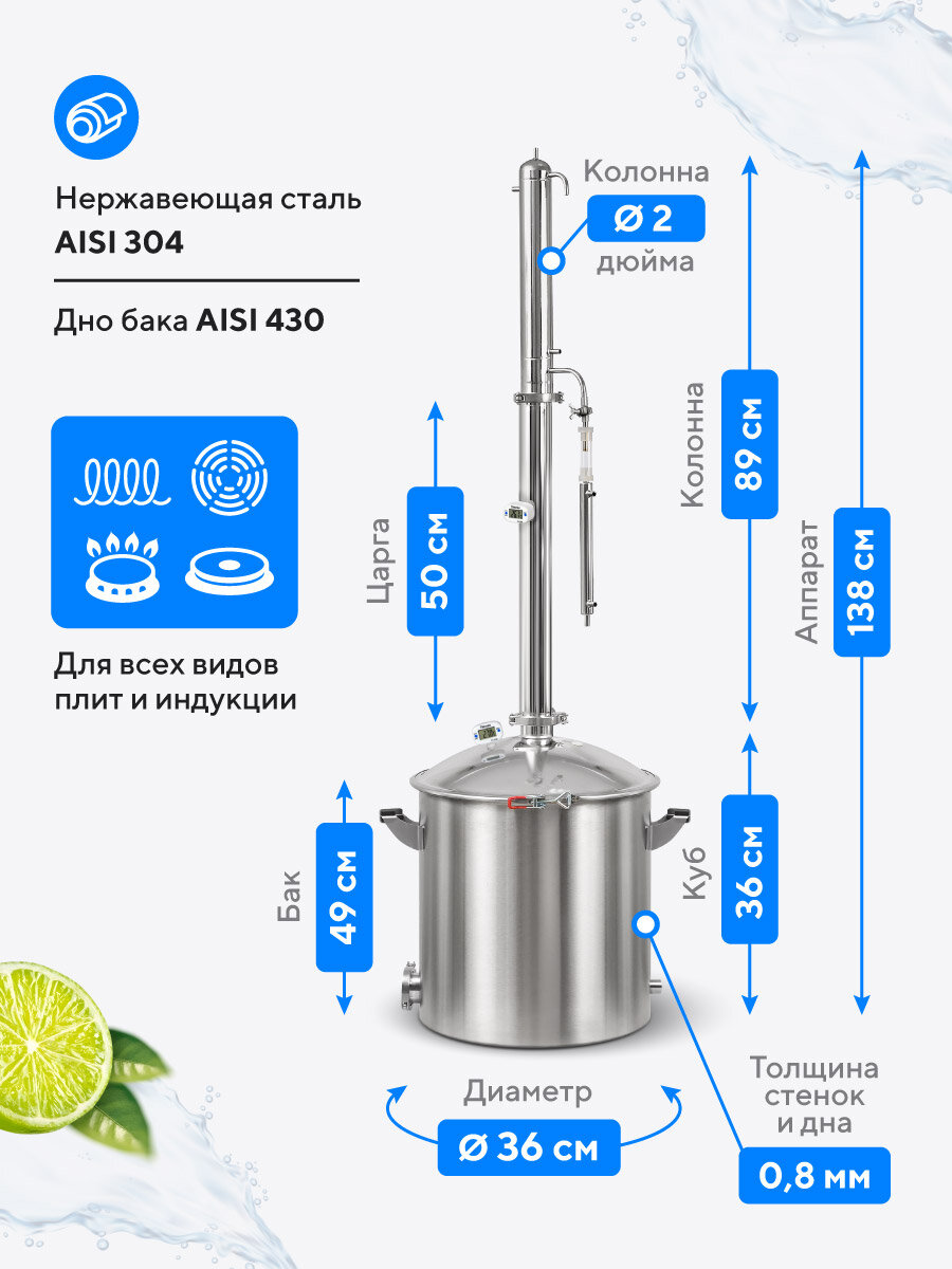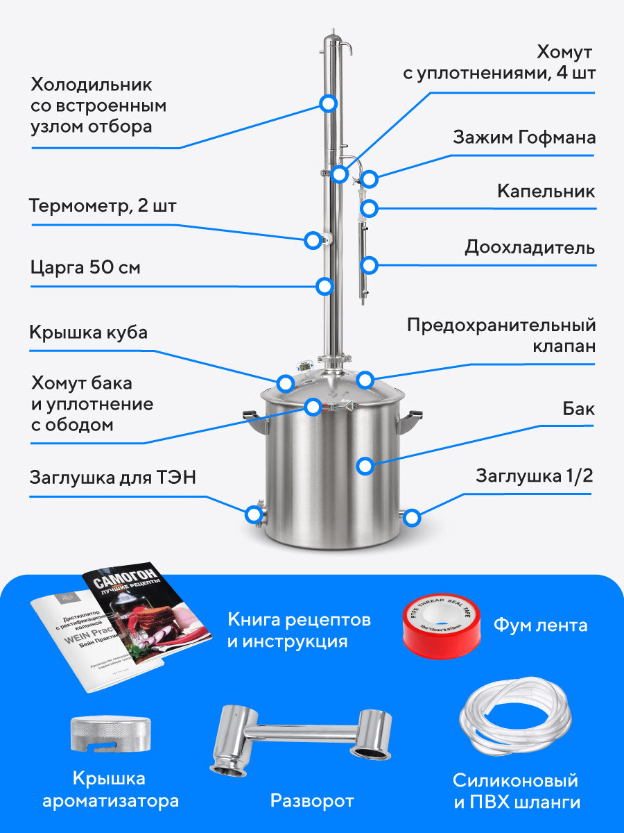 Самогонный аппарат колонного типа 2 дюйма Wein Practic Lite 37 литров интересное: