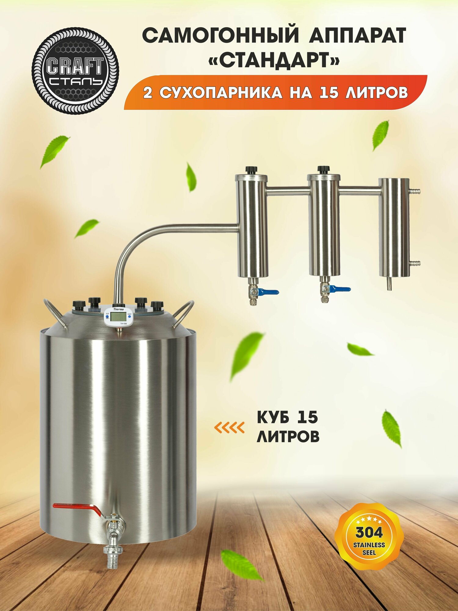 Самогонный аппарат CRAFT Сталь Стандарт с 2-мя сухопарниками (Домашний дистиллятор) 15 литров интересное: