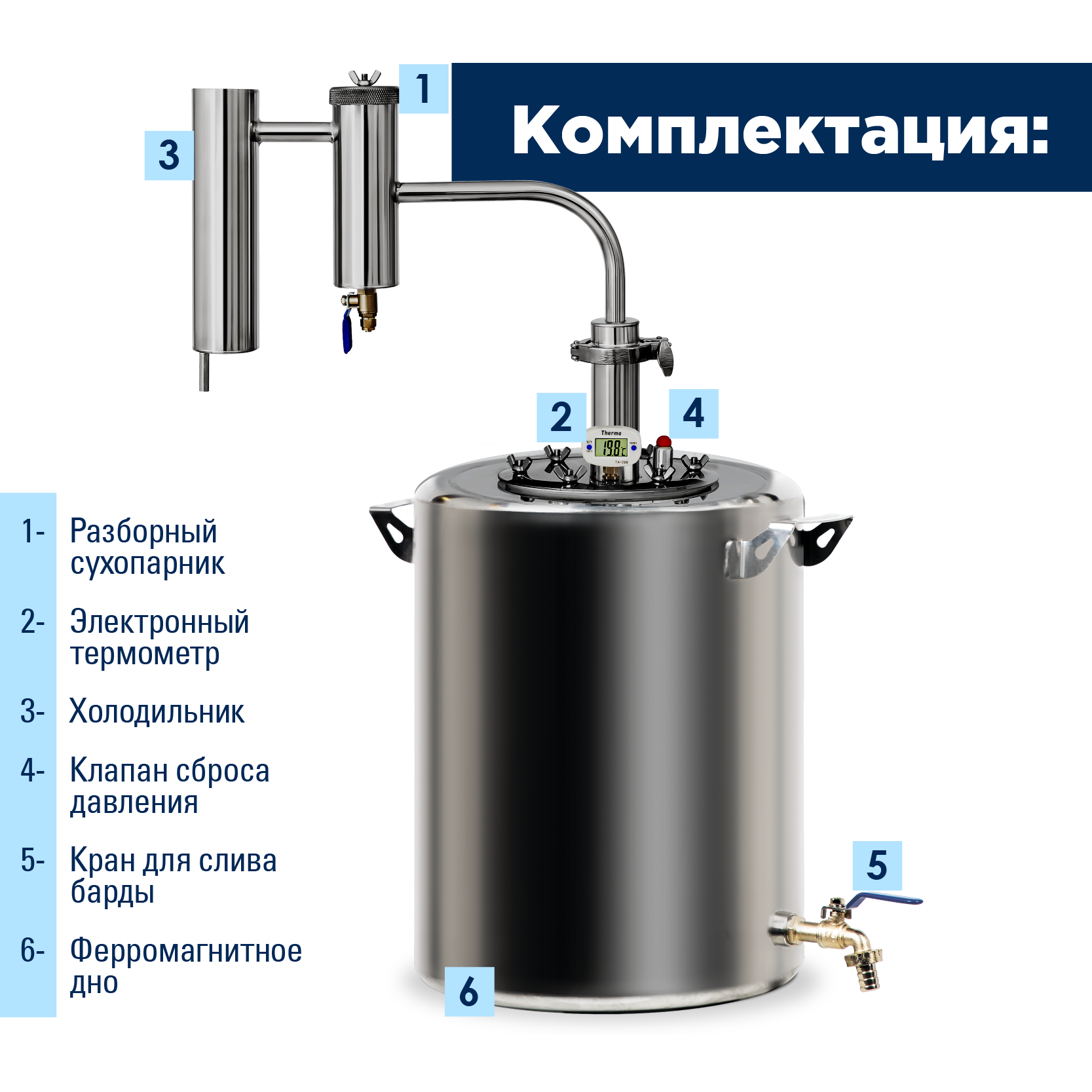 Самогонный аппарат "МИР" Финляндия 30 литров, дистиллятор с сухопарником интересное: