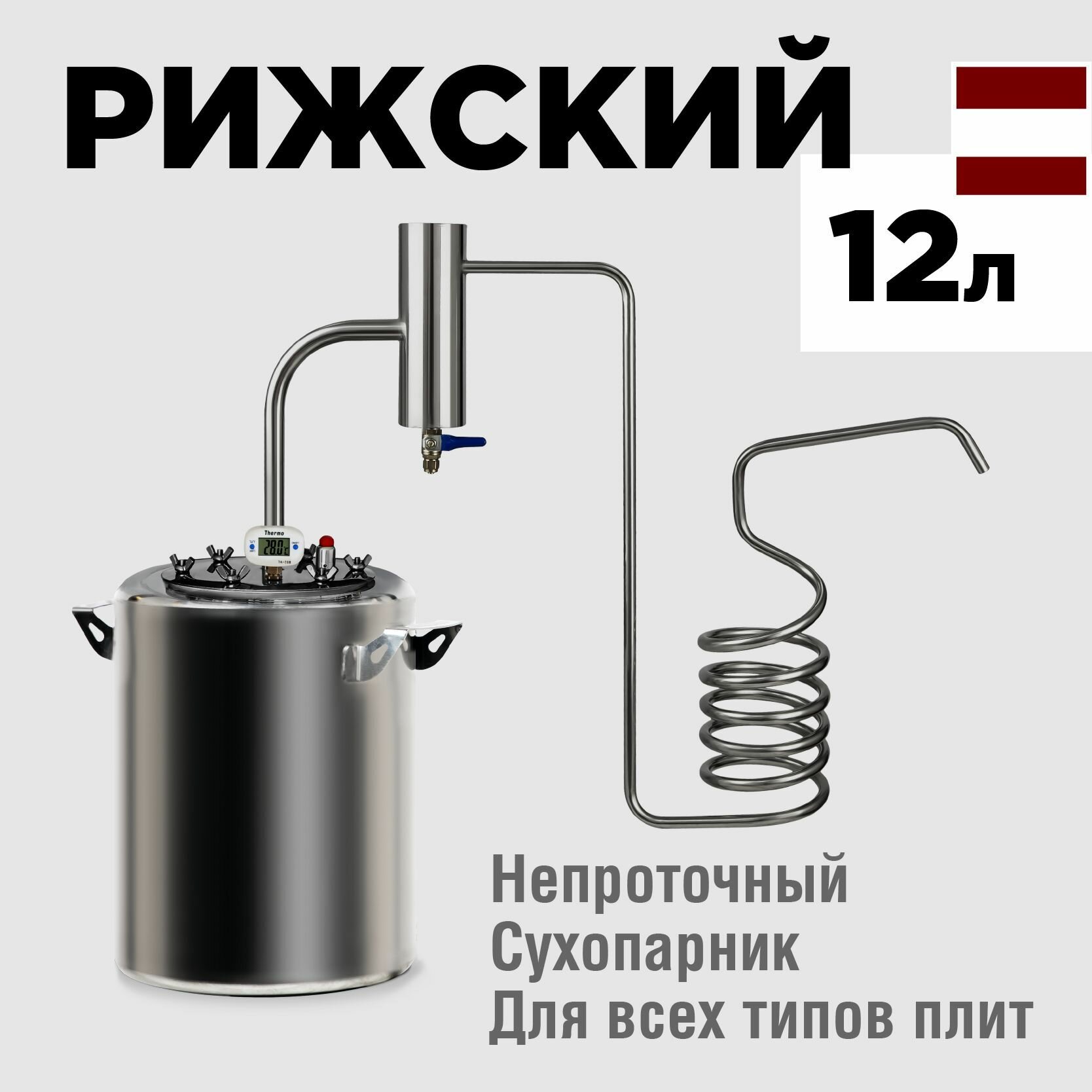 Купить Самогонный аппарат "МИР" Рижский 12 литров, непроточный самогонный аппарат с сухопарником и с змеевиком