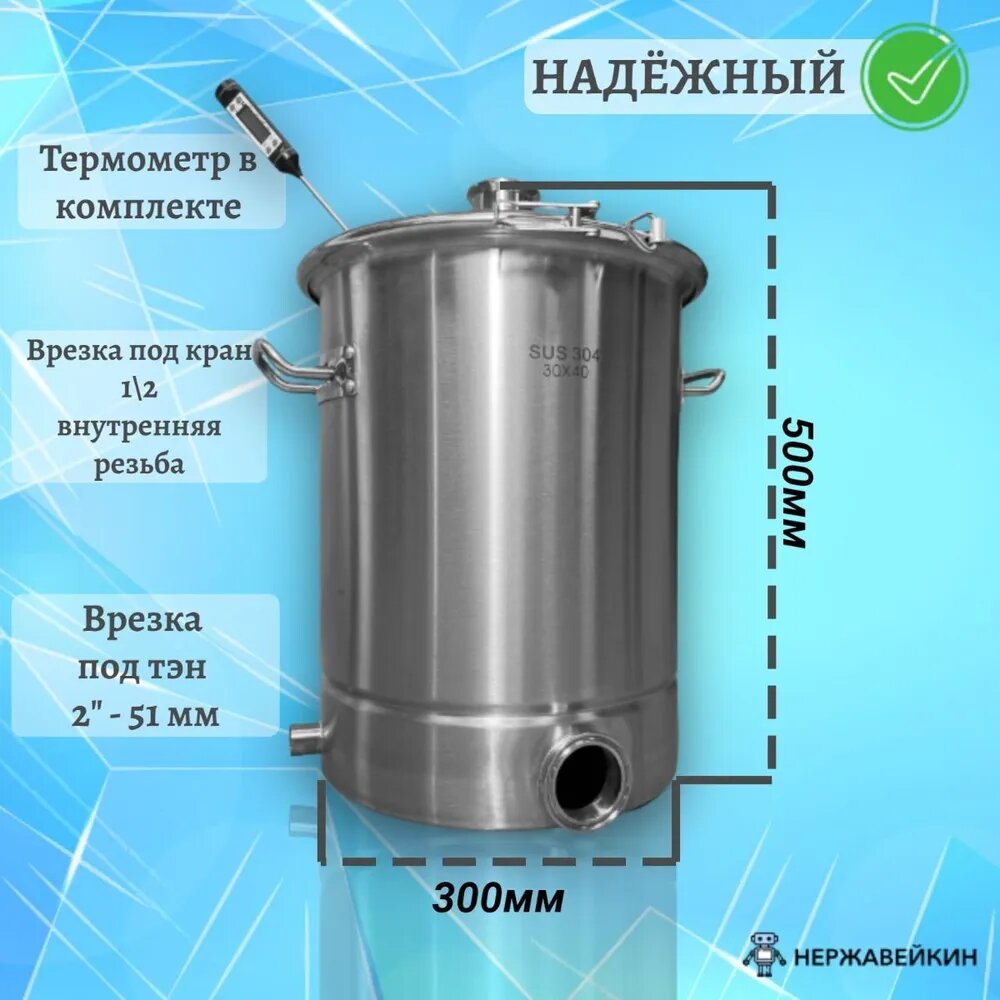 Перегонный куб Люкс 28 литров с клампом под тэн, выход в крышке 2 дюйма интересное: