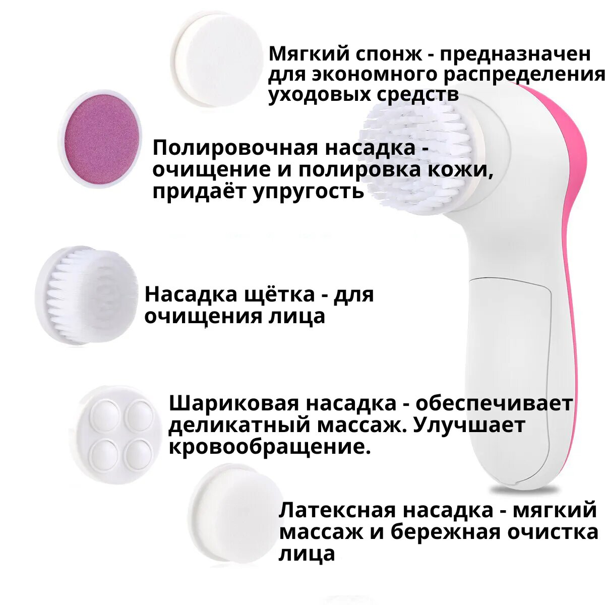 Электрическая щётка для умывания 5 в 1, розовый интересное: