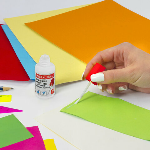 Клей ПВА Brauberg канцелярский, с кисточкой, для бумаги, картона, ткани, 20 мл, 10 шт.