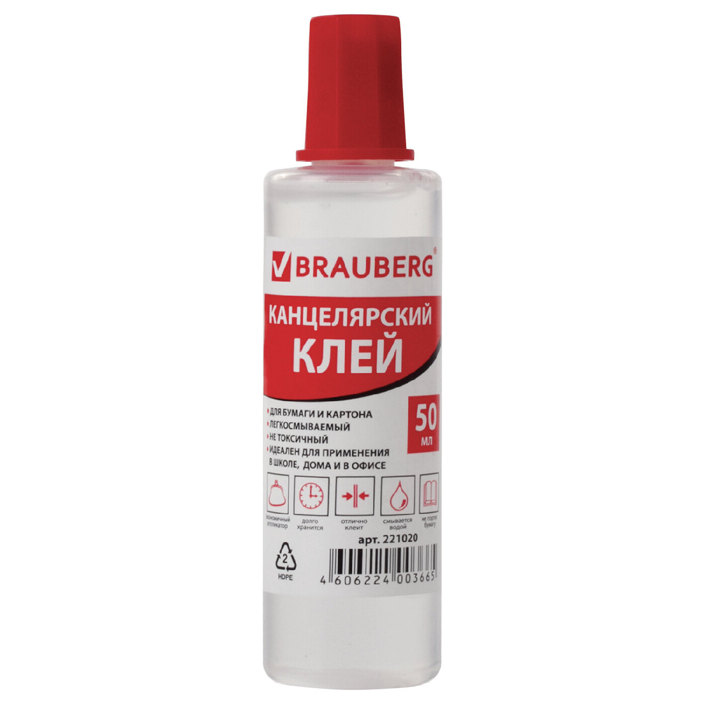 Клей канцелярский жидкий BRAUBERG, 50 мл, с аппликатором, 221020