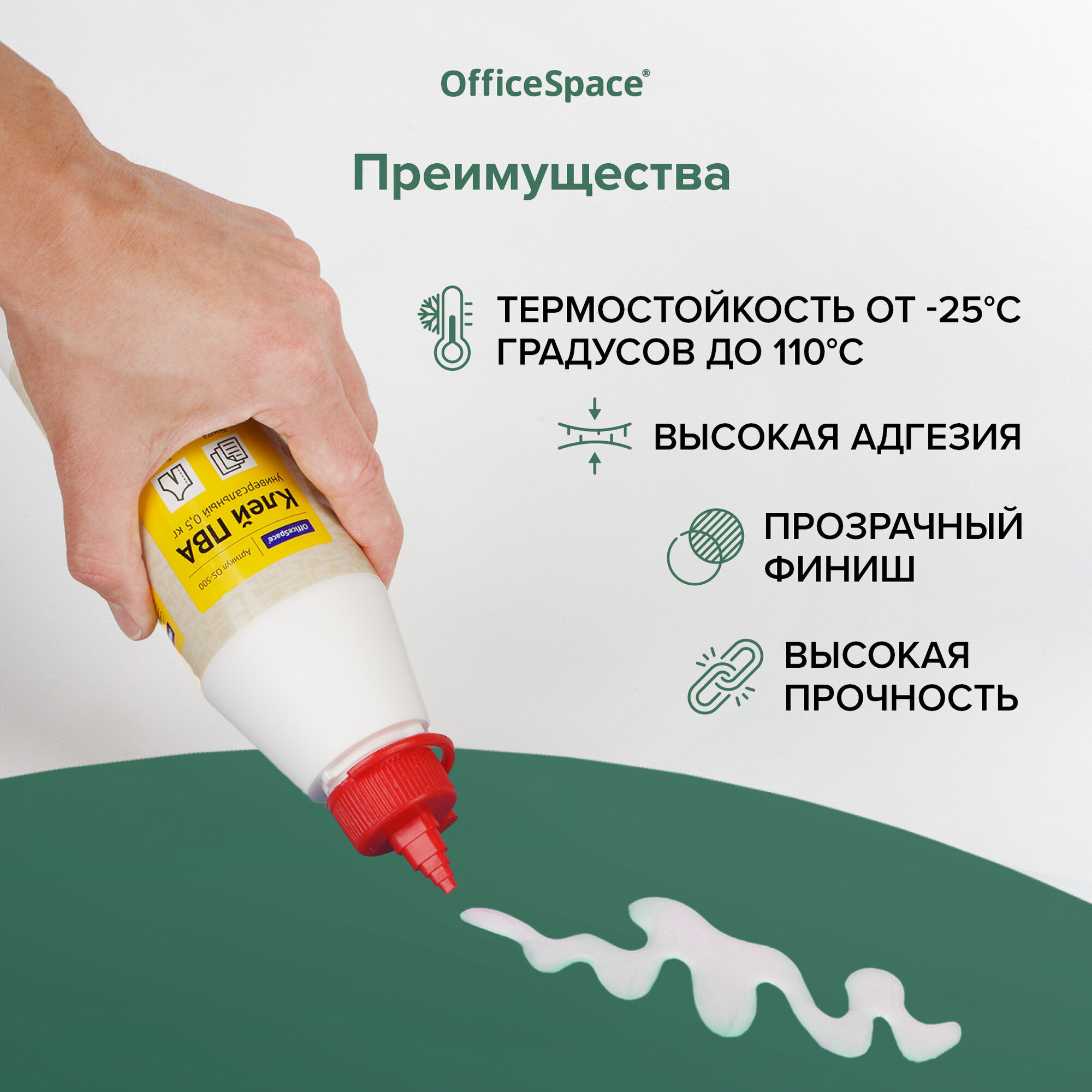 Купить Клей ПВА OfficeSpace, универсальный, с дозатором, 0,5кг, 1 шт.