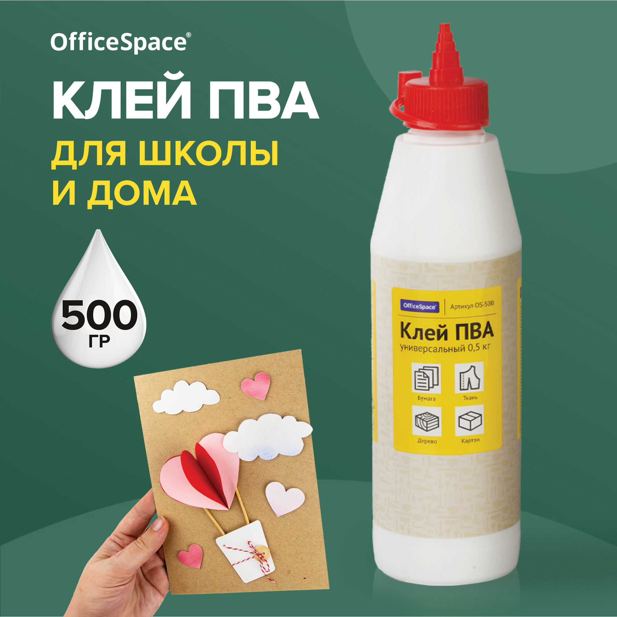Клей ПВА OfficeSpace, универсальный, с дозатором, 0,5кг, 1 шт. интересное: