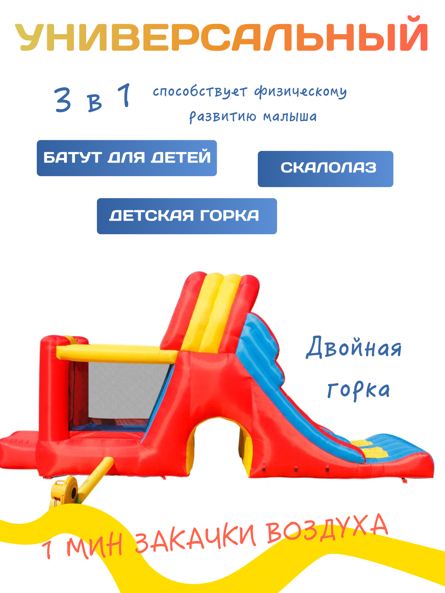 Надувной батут с двойной горкой "Мега горка" интересное: