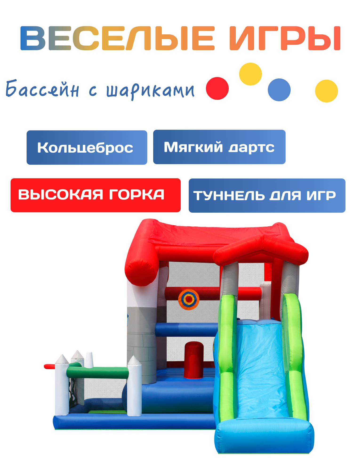 | Состав комплекса | баскетбольное кольцо / батут / горка / кольцеброс / туннель |