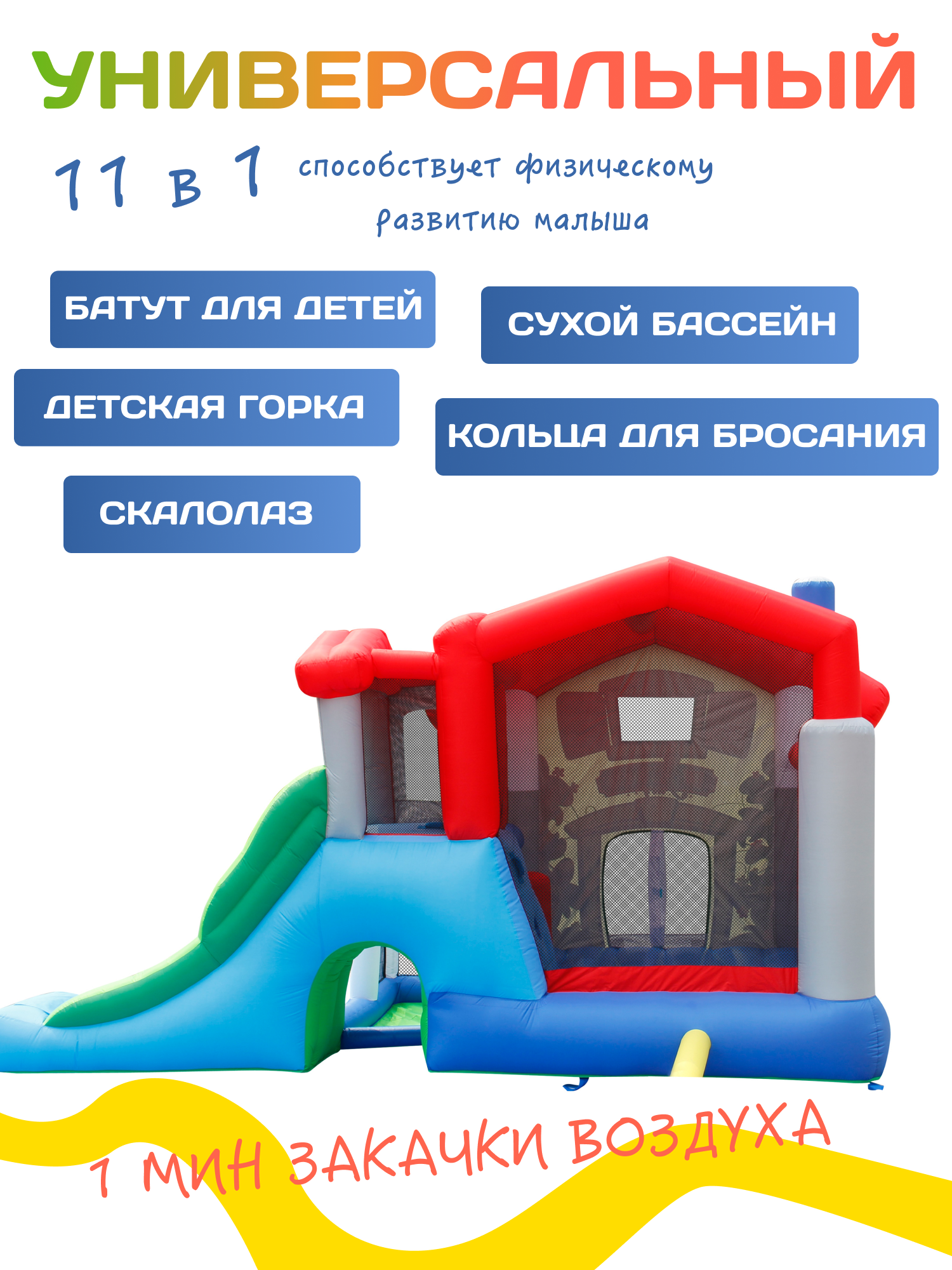 Надувной детский батут для детей в возрасте от 3 до 6 лет