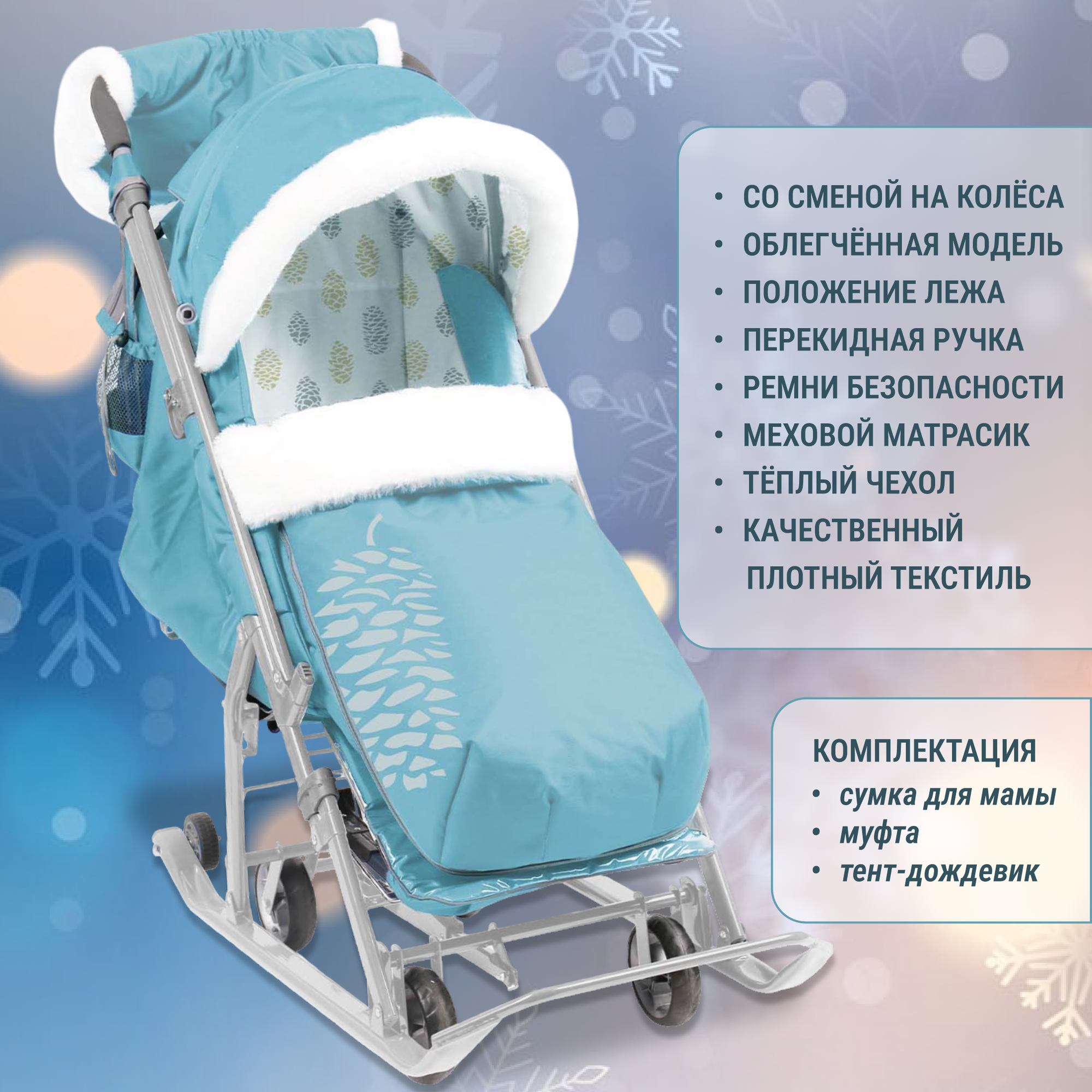 | Комплектация | дождевик / матрас / муфта / сумка для мамы / чехол для ног |
