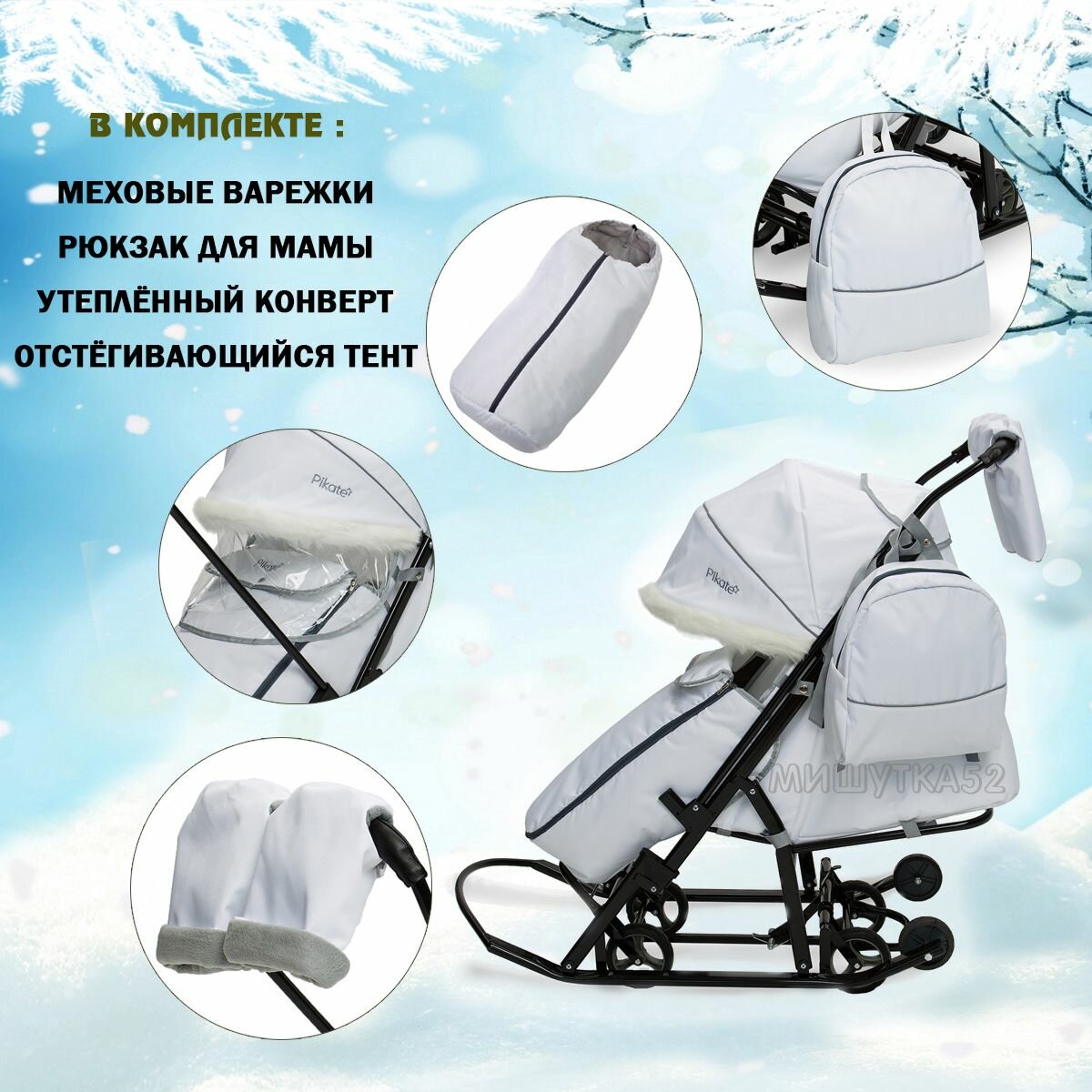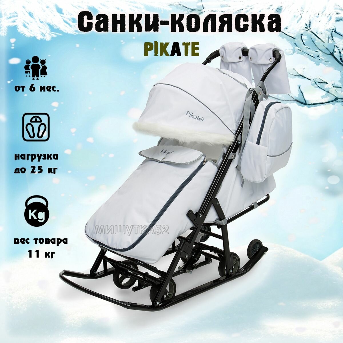 Санки-коляска Pikate Arctic белый интересное: