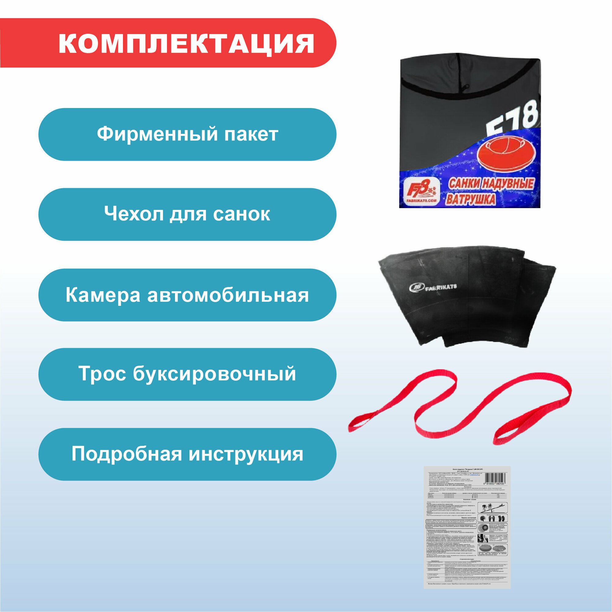 Тюбинг ватрушка F78 красная 100 см, с камерой