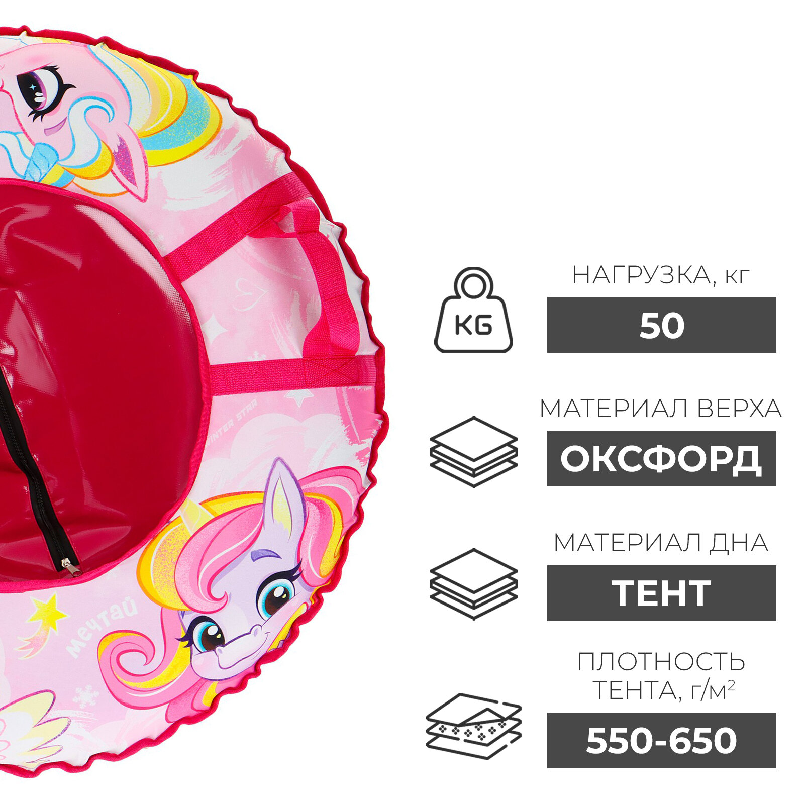 Купить Тюбинг-ватрушка Winter Star «Пони», диаметр чехла 83 см