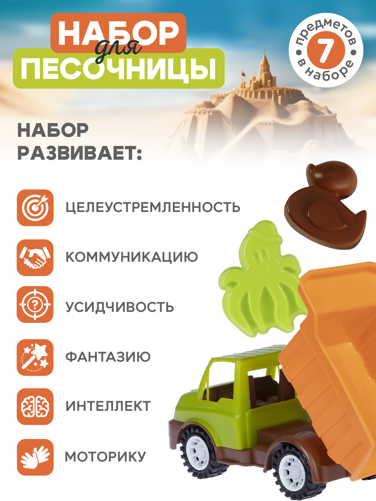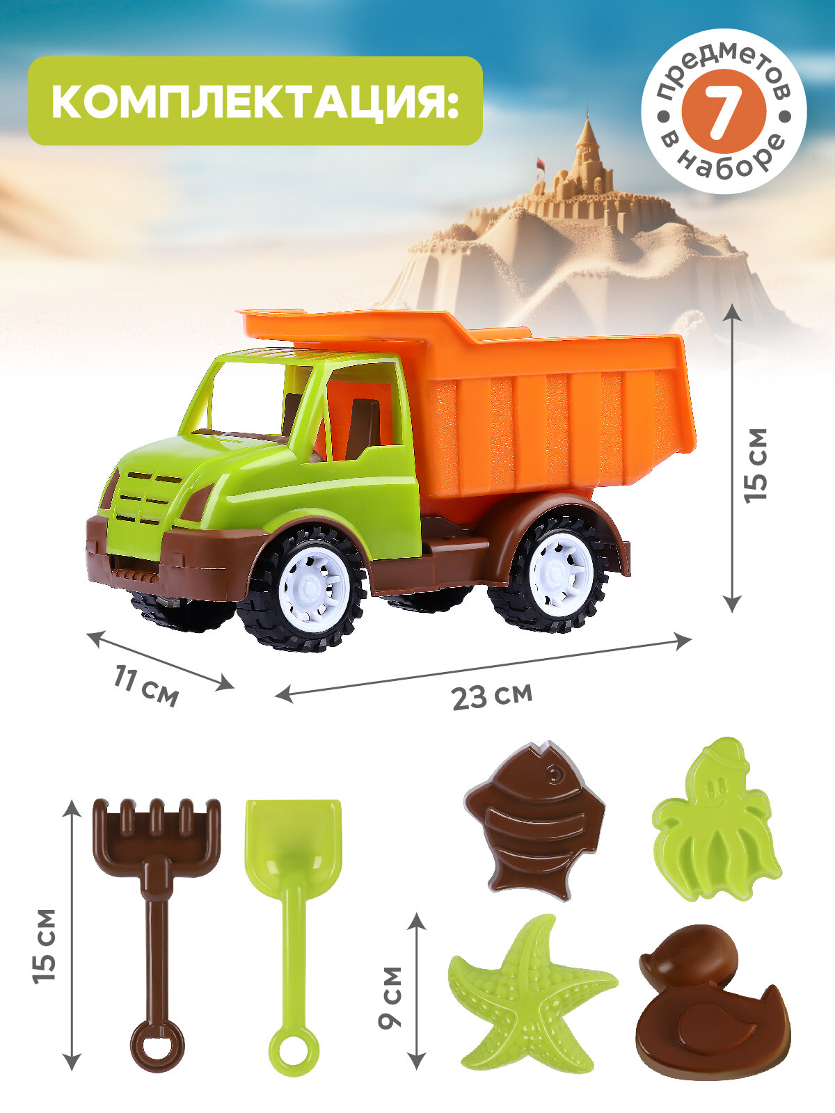 Набор для игры в песочнице с грузовиком, грабельки/лопатка, формочки для песка, JB5300534