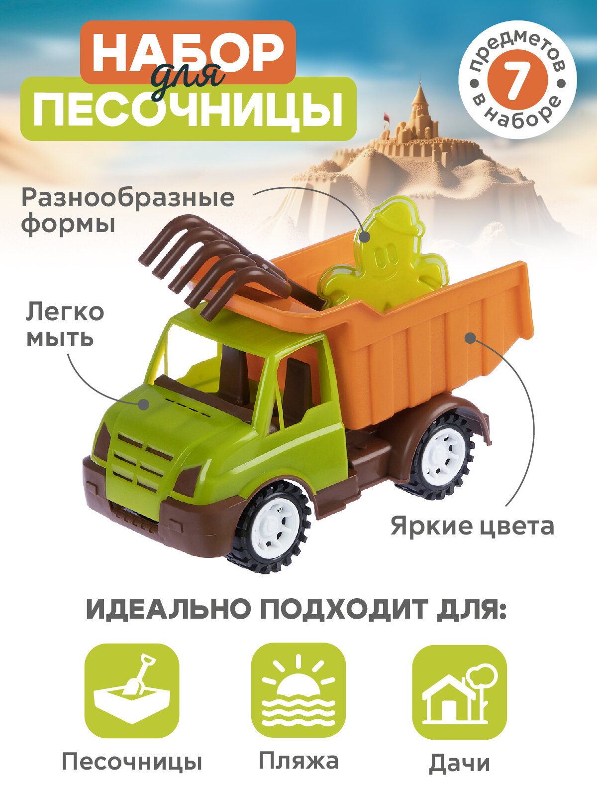 Набор для игры в песочнице с грузовиком, грабельки/лопатка, формочки для песка, JB5300565
