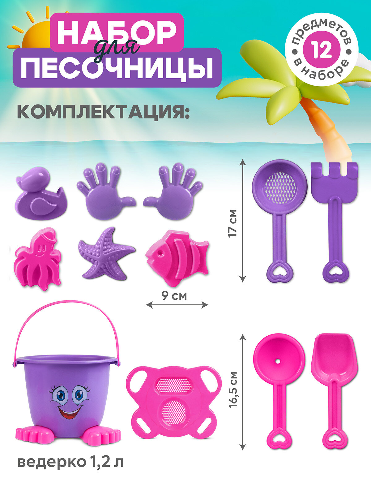 | В наборе | ведро / грабли / лопатка / сито / формочки |