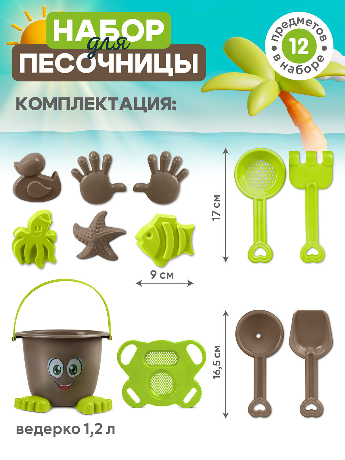 | В наборе | ведро / грабли / лопатка / сито / формочки |