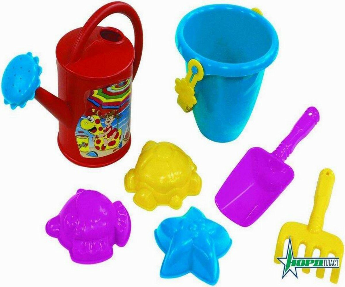 Набор для игры в песочнице №15 (ведерко "Морское" лейка, формочки, совочек, грабли) Нордпласт Н-124N интересное: