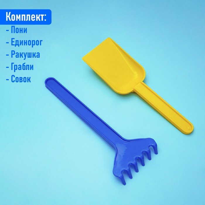 Набор для игры в песке №108 (3 формочки для песка, грабли, совок) интересное: