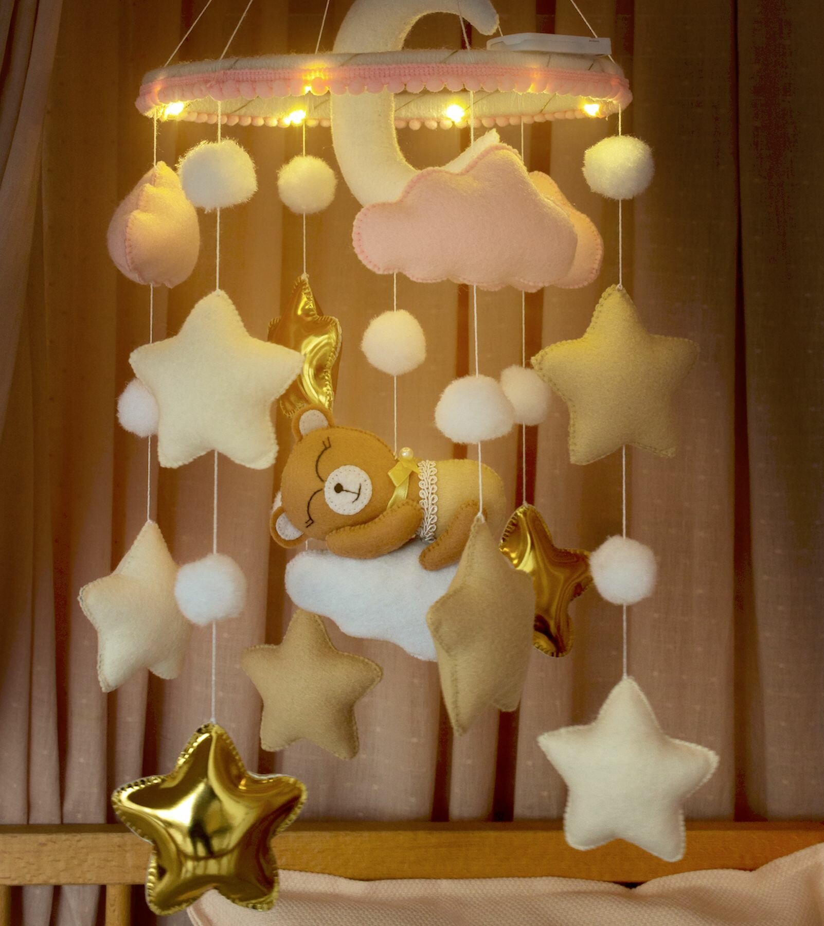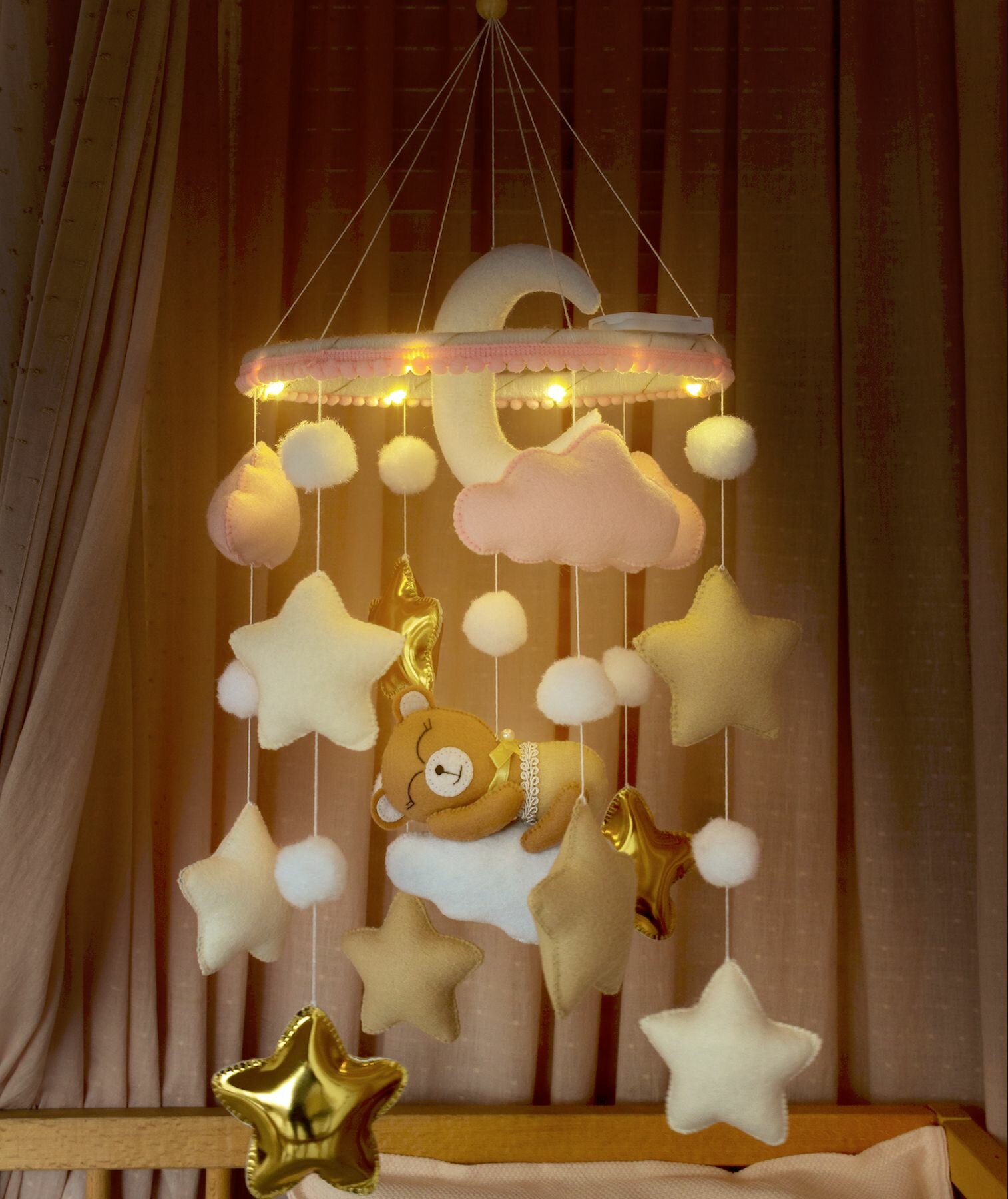 Мобиль в кроватку с подсветкой для девочки