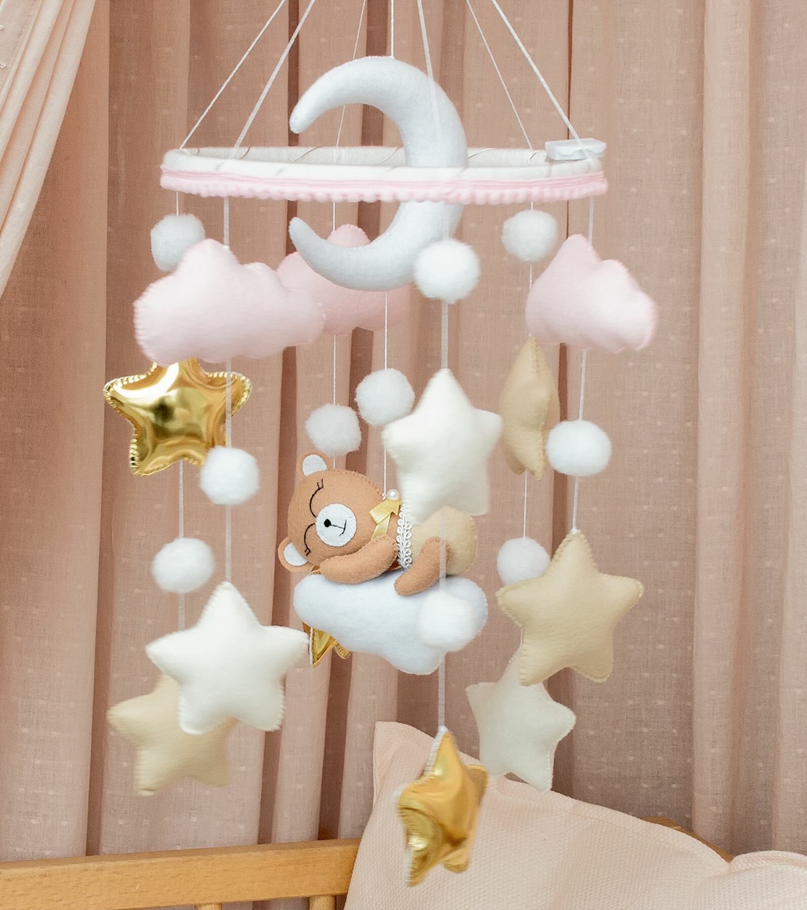 Мобиль розовый в кроватку с подсветкой для девочки интересное:
