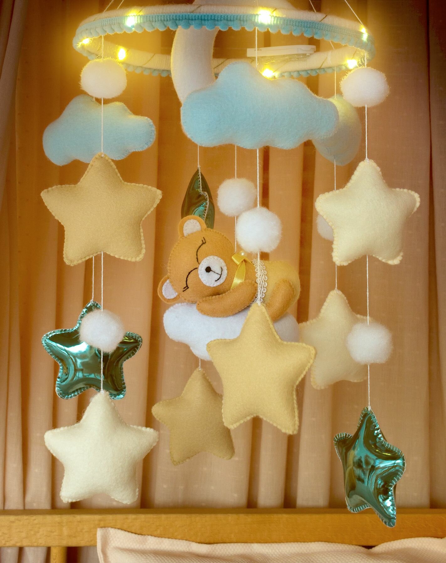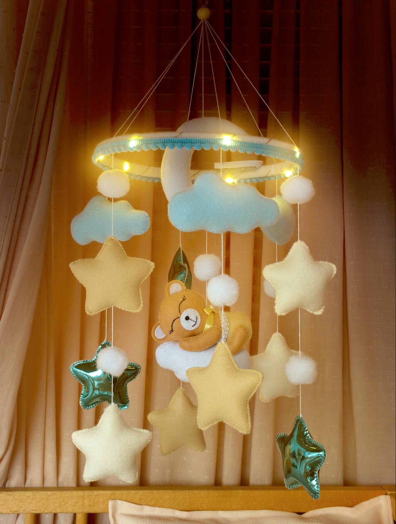 Мобиль в кроватку для новорожденных с подсветкой