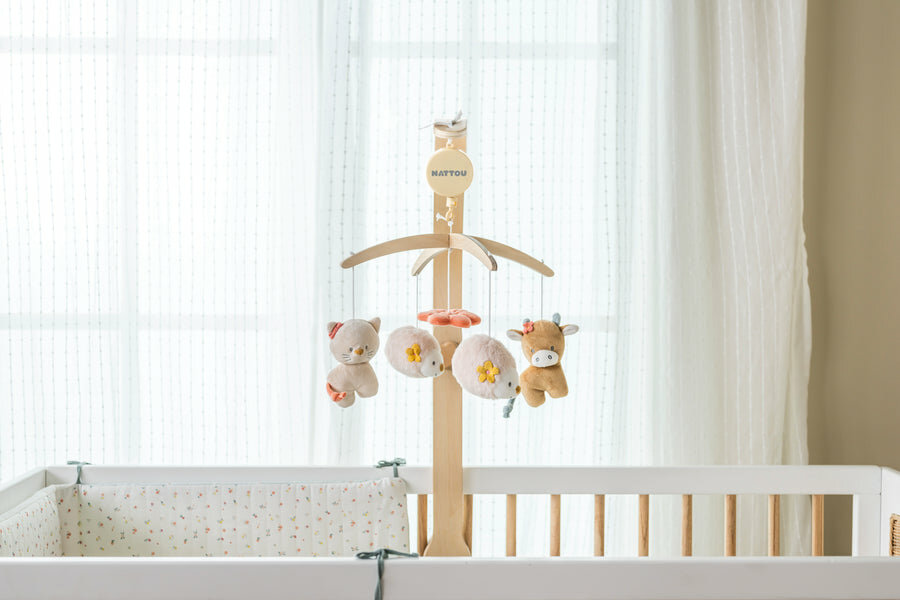 Мобиль Nattou MILA ZOË LANA Корова, Ёжик, Кот с деревянным держателем 266208 интересное: