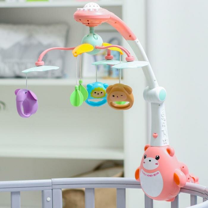 Мобиль музыкальный на кроватку «Мишка. Зоопарк», проектор, пульт, цвет микс интересное: