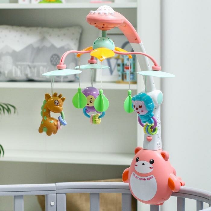 Купить Мобиль музыкальный на кроватку «Мишка. Африка», проектор, пульт, цвет микс