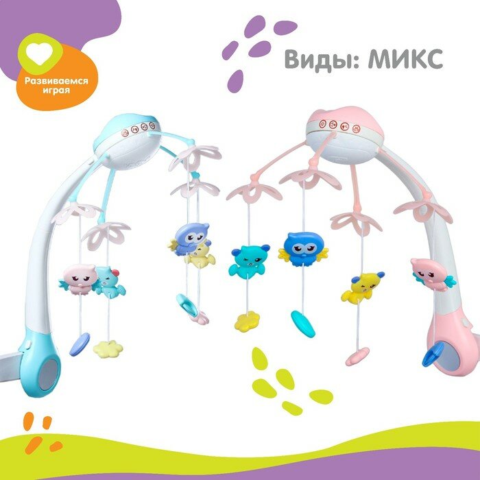 Мобиль музыкальный на кроватку «Нежные птички», с ночником + пульт, цвет микс интересное: