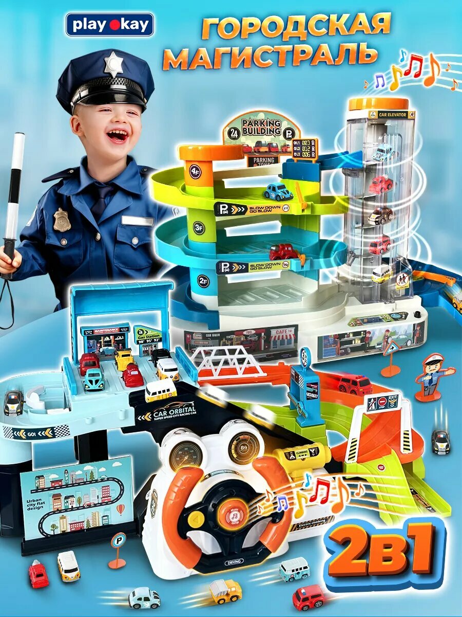 Купить Парковка для машинок с лифтом детская - автотрек и гараж