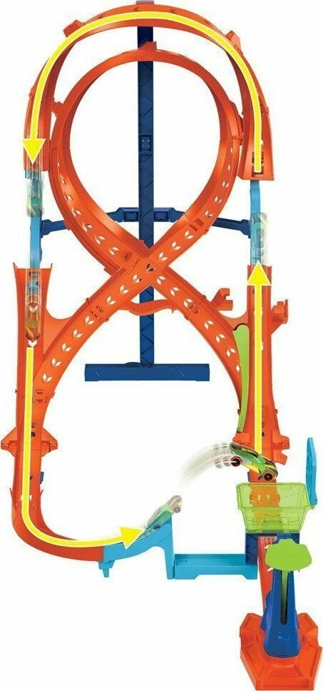 Трек Hot Wheels Action Vertikaler 8er-Kurvensprung HMB15 оранжевый/синий интересное: