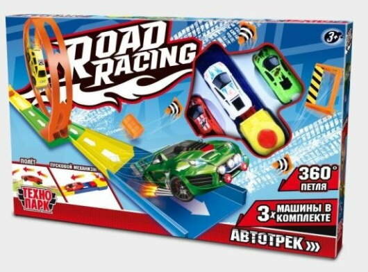 Игрушка пластик ROAD RACING автотрек 3 машинки, 1 петля, интересное: