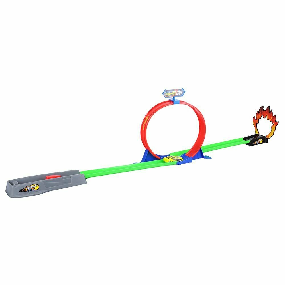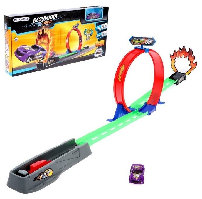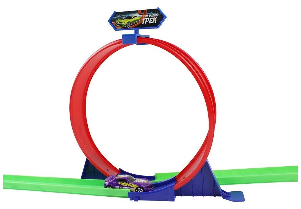 | Комплектация | машинка, три разных детали для разных участков трека, стойка, катапульта, платформа для запуска машинки, круг-цель для дальнего конца трека, знак-указатель |