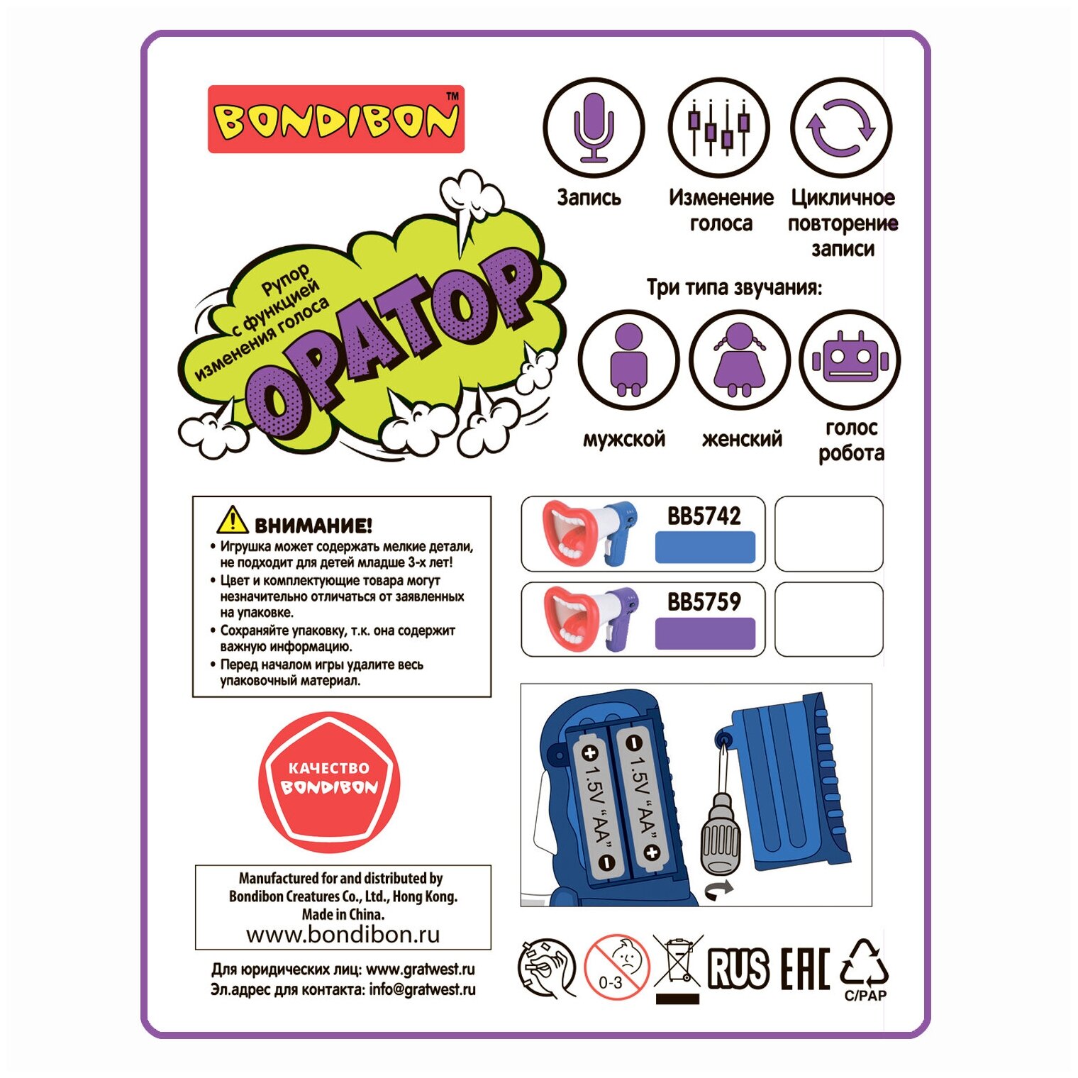 Рупор "Оратор" Bondibon функция изменения голоса, фиолетовый, Box интересное: